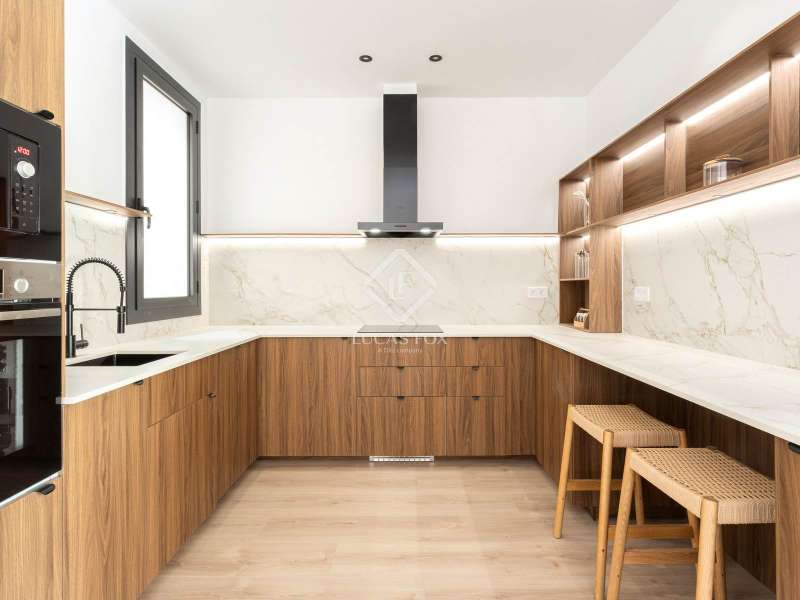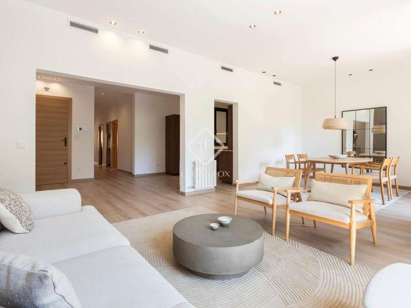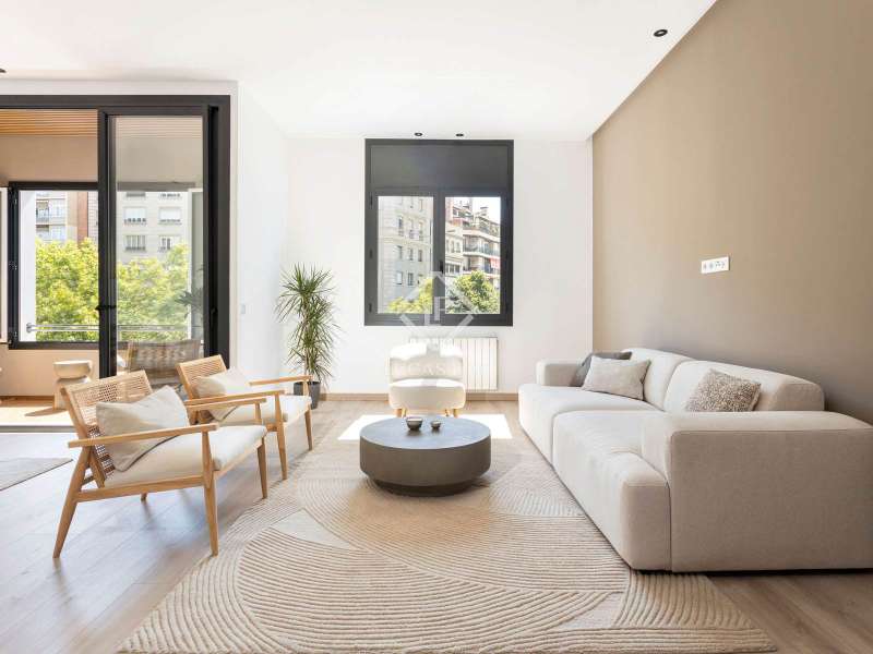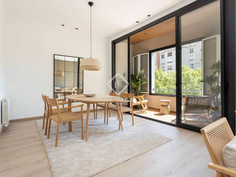 Exclusive property in a prime location, just steps from Francesc Maciá. Located on the second floor (third floor ) of a stately building on the prestigious Josep Tarradellas Avenue, this elegant residence has been completely renovated with high-quality finishes. It stands out for its abundant natural light, thanks to its double orientation, as well as for its spacious interiors, with high ceilings. Upon entering, we find a large entrance hall that leads to the day area, consisting of an open kitchen, living room and dining room, with large windows that lead to a cozy balcony gallery that offers clear views of the exterior. The open, modern kitchen is equipped with integrated Bosch appliances and includes an oven, induction cooktop, dishwasher, and extractor hood. The countertop is Dekton by Cosentino, with a sophisticated matte finish. The night area consists of three large double bedrooms and three full bathrooms, one of them en suite . There is also a utility room. The master bedroom has access to a bright gallery, a dressing room, and a bathroom with a bathtub. The property features LG ducted air conditioning with an advanced variable cooling system, and radiator heating in all rooms. It also features double-glazed aluminum windows with an air chamber, providing both thermal and acoustic insulation. Located in an emblematic 1940s building in excellent condition and with a classic character, it features a concierge service and two elevators: one original, notable for its historic charm, and a service elevator with a separate entrance through the service door. The property also includes a private storage room in the basement of La Finca. The location is unbeatable, in one of Barcelona's most sought-after and established areas , surrounded by select shops, signature restaurants, and very well connected by public transport. A unique, move-in ready piece that combines elegance, comfort, and location.