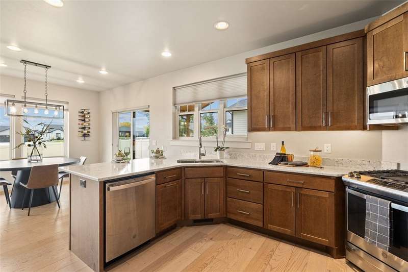 Welcome home to this like-new ranch in Silver Creek Estates, tucked into the heart of the west end. Built in 2021, this home is fresh, bright, and move-in ready. You'll love the functional open layout with 4 bedrooms, 3 full baths, and thoughtful touches throughout. The main level features engineered hardwoods, a cozy gas fireplace, and a beautiful kitchen with quartz countertops, a large island, and a convenient laundry room just off the garage that flows into the heart of the home. The large primary suite offers a tiled shower and spacious walk-in closet. The fully finished basement adds even more space with two additional bedrooms, a full bath, a large family room, and plenty of storage. And don't miss the oversized covered patio - perfect for warm summer nights - overlooking the fully landscaped yard with underground sprinklers. Reach out for more info or to schedule a showing!