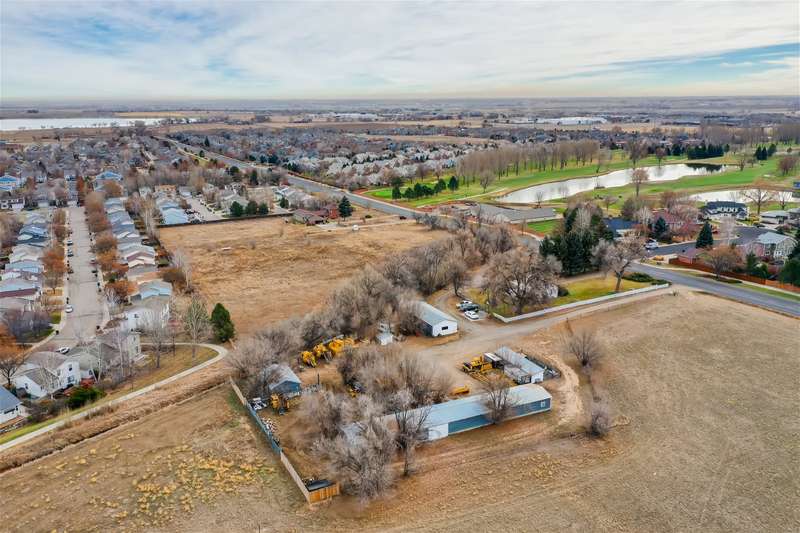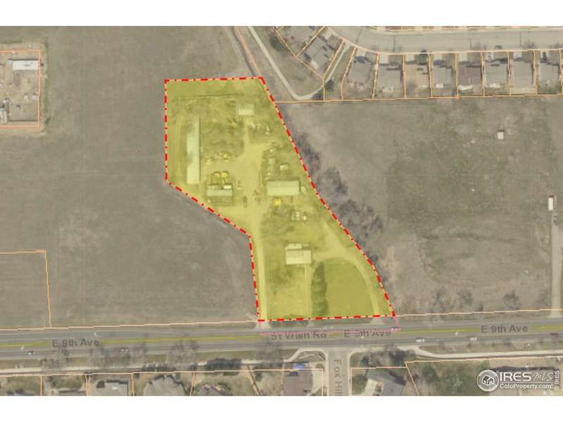 Great development opportunity or buy and hold. Just under 3 acres east of Pace, on the north side of 9th (St. Vrain Rd) across from the north entrance to Fox Hill. Property is currently in Boulder County, zoned Ag. Improvements include 1947 farmhouse, plus 6 outbuildings. One of the few infill development lots in Longmont. Up to 18 units per acres possible. Water rights include 1/4 share of Rough and Ready Ditch, which delivers approximately 14.9 acre-feet of water. According to the City, this would fulfill the raw water requirements for development.