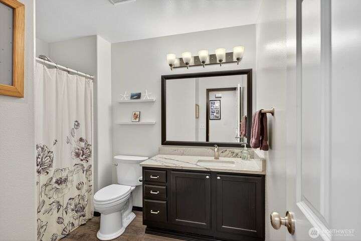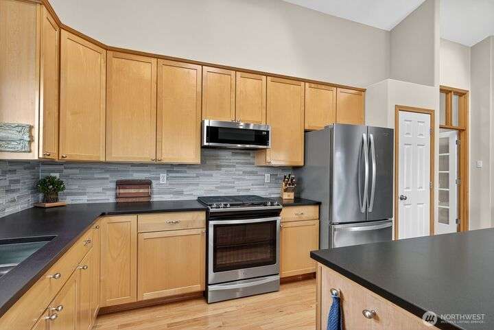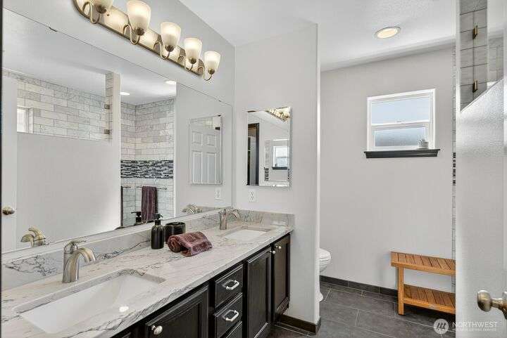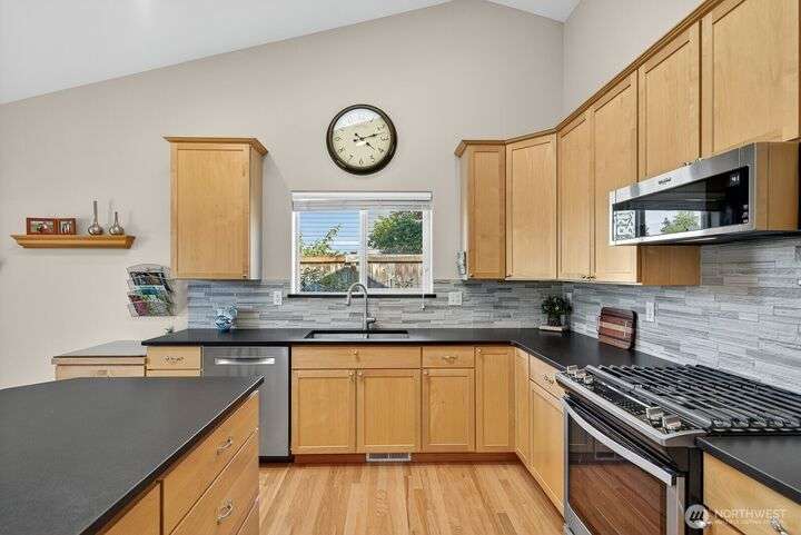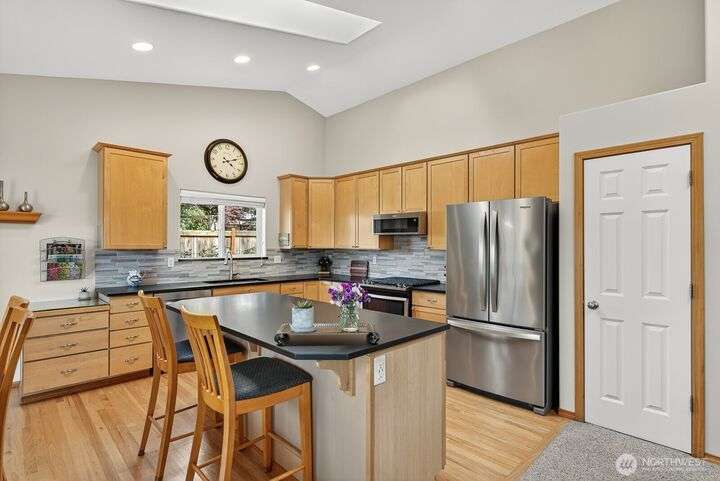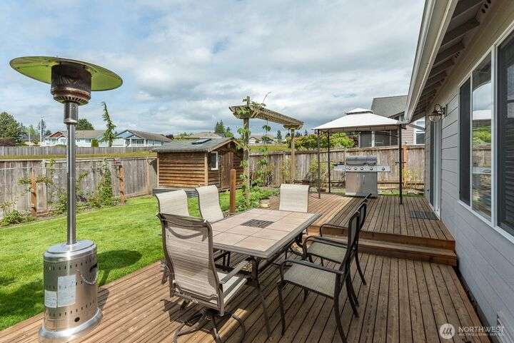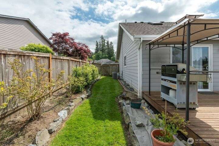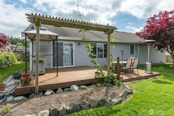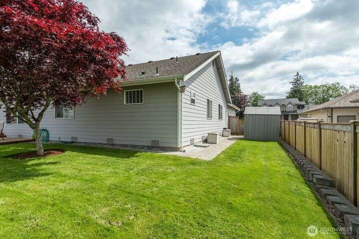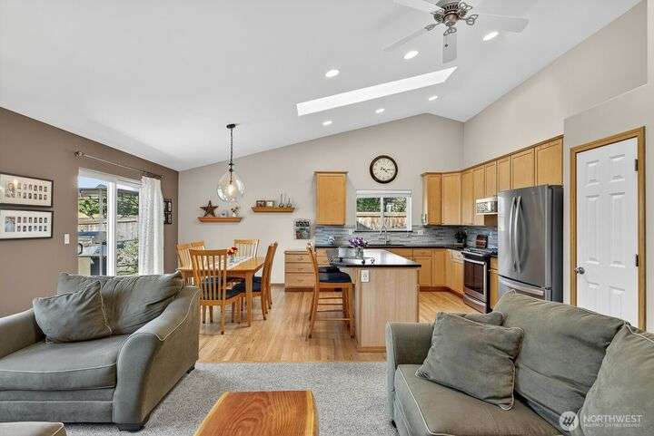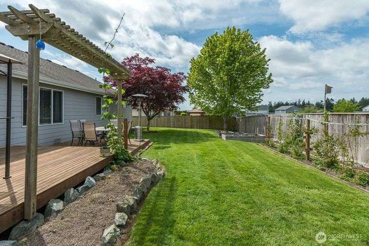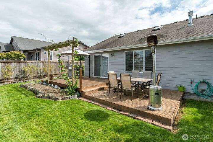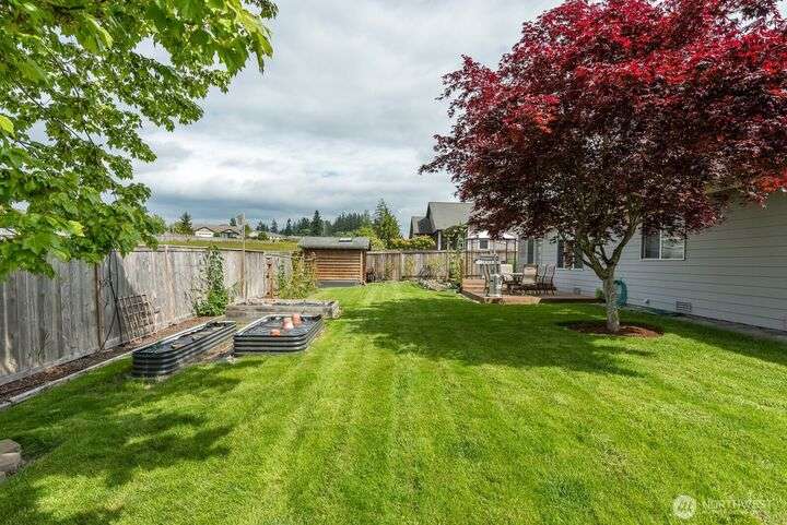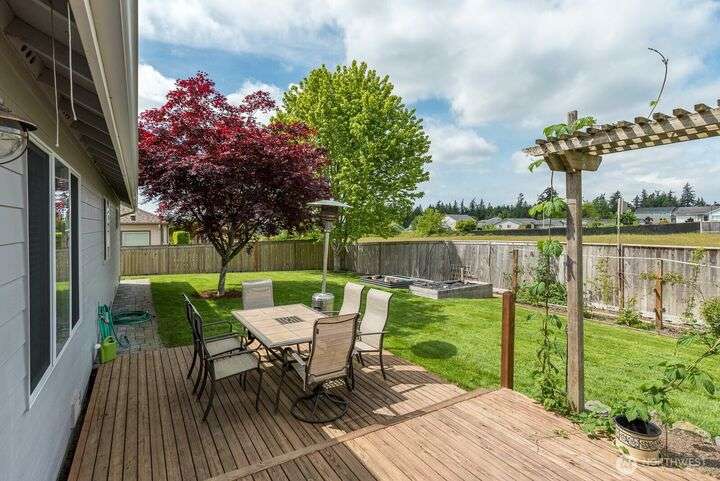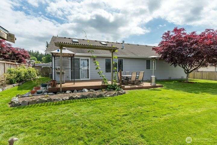 Immaculate 4-beds & 1.75-bath home in the heart of Stanwood on nearly quarter-acre lot! Located in Candle Ridge neighborhood, this beautifully updated home features open kitchen w/island, honed granite, stainless appliances, & pantry. Spacious floor plan w/living rm & family rm. Vaulted ceilings & skylights make this home light & bright! Gas FP w/slate surround. Primary suite w/large tiled WI shower, WI closet, dual sinks w/granite. All bedrooms are generous in size, & guest bath has granite too. Fenced backyard offers endless possibilities for outdoor living, gardening & garden shed. Nice deck w/trellis. 2 car garage w/ample storage. Central AC too! Conveniently located near schools, parks, & easy I-5 access. A rare find & move in Ready!