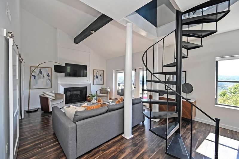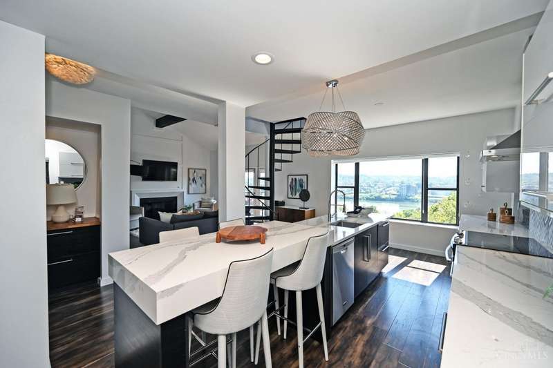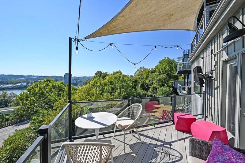 This stunning 2 bed, 2 bath condo offers panoramic river views from 1st and 2nd floor balconies. The modern open-concept kitchen is beautifully updated, featuring quartz counters, stainless steel appliances, and a wine cooler. Set on a quiet street across from a wooded area, this gorgeous home features vaulted ceilings, a cozy fireplace, private patio, and ample street parking. Just moments away from local eateries, coffee shops, pubs, theater, museums, botanical gardens, and Eden Park. Conveniently located, less than 10-minute drive to Downtown Cincinnati, Northern Kentucky, stadiums, music venues, and vibrant hot spots. Two-unit building with a low HOA.