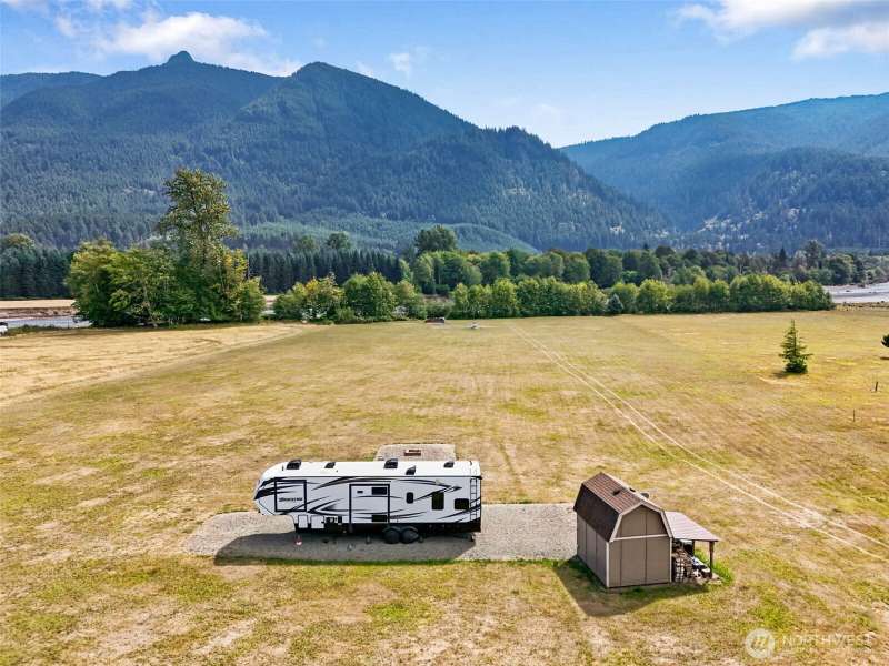 This is one of the best riverfront lots in the gated community of River Run Ranch! Panoramic mountain views surround this perfect weekend getaway recreational land. 2 gravel pads. Upper pad has 1-50 amp & 3-30 amp outlets. Lower pad has 1-50 amp & a few 20 & 30 amp outlets. Shed with lights and outside receptacles stays with sale. Sewage disposal ports and water are located just outside the main gate. The community of River Run Ranch is centrally located, offering easy access to a wide variety of outdoor sports and activities. Minutes from entertaining Downtown Packwood, the slopes and more! 2 riding lawn mowers, 2 sit on kayaks, 55 gallon water tank & pump & misc yard tools negotiable.