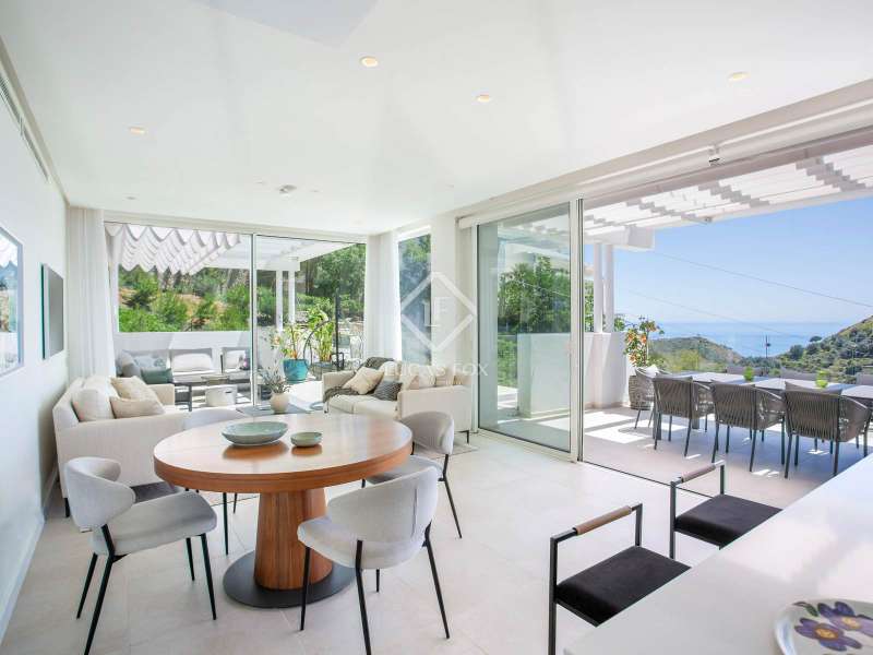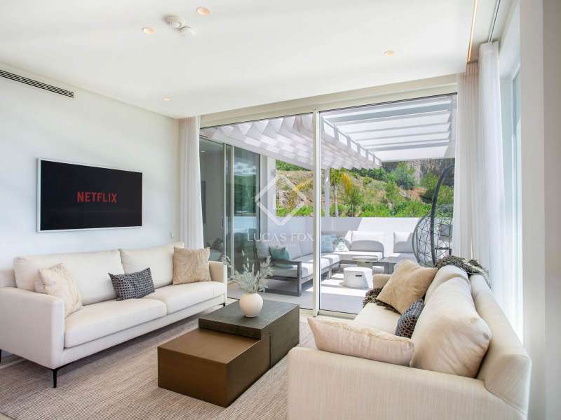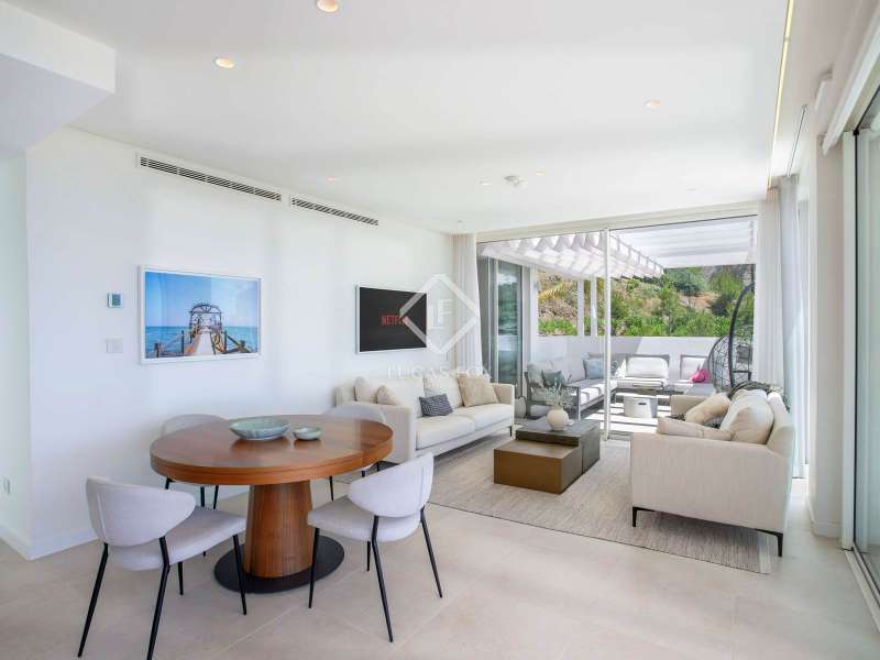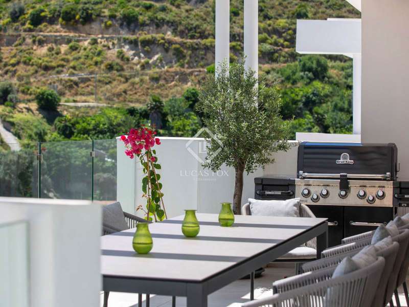 This sophisticated 3-bedroom penthouse effortlessly combines contemporary design with timeless comfort. Set on the top floor, the home is filled with natural light and designed to maximize the spectacular sea and mountain views from nearly every angle. The open-plan living area is sleek and airy, with a fully fitted modern kitchen that flows into the dining and lounge space. Floor-to-ceiling sliding doors connect the interior to a generous 53?m² terrace, ideal for entertaining or simply soaking up the sun. With a built-in barbecue, lounge area, and dining for ten, this outdoor space feels like a private sky lounge. All three bedrooms are spacious and finished to the highest standard. The main suite offers direct access to the terrace, a walk-in wardrobe, and an elegant en-suite bathroom. Underfloor heating runs throughout the apartment, and each room features independent air conditioning for year-round comfort. Extras include two large underground parking spaces and a private storage room, adding both practicality and convenience to this stylish penthouse. Please contact us for further information.