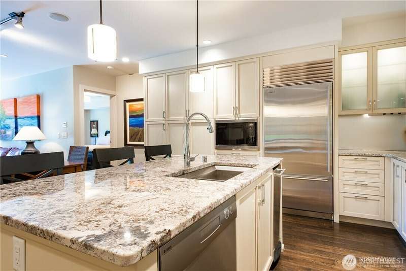 Own a piece of paradise nestled on the iconic Semiahmoo Peninsula at the Marin. Designed with the beauty of the Northwest in mind, this condo blends modern architecture with quality craftsmanship, offering both luxury & convenience. Well thought out floorplan features 2 primary suites w/ custom walk-in closets, den/office, 2.5 baths and plenty of storage. High-end finishes throughout: granite counters, hardwood floors, & stainless steel appliances. Radiant floor heating keeps the cost low & energy efficiency high. The spacious deck w/ stairs leading to the beach is a real plus, as well as the secure underground parking & storage. HOA is well run and strong financially. If you are looking for a spot in the PNW, there's no better buy!