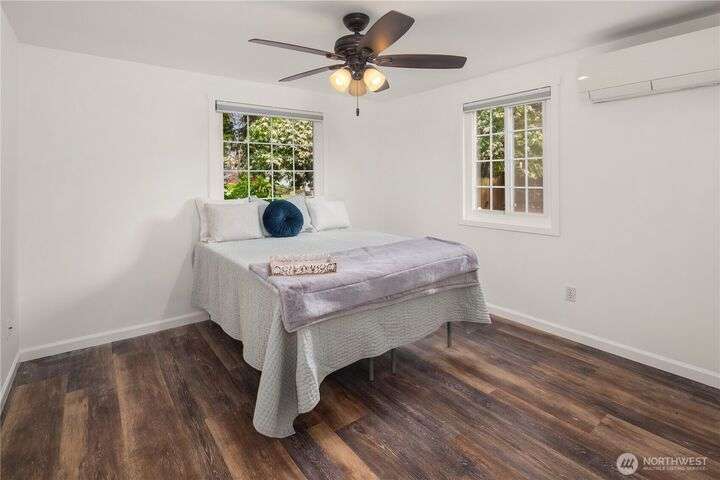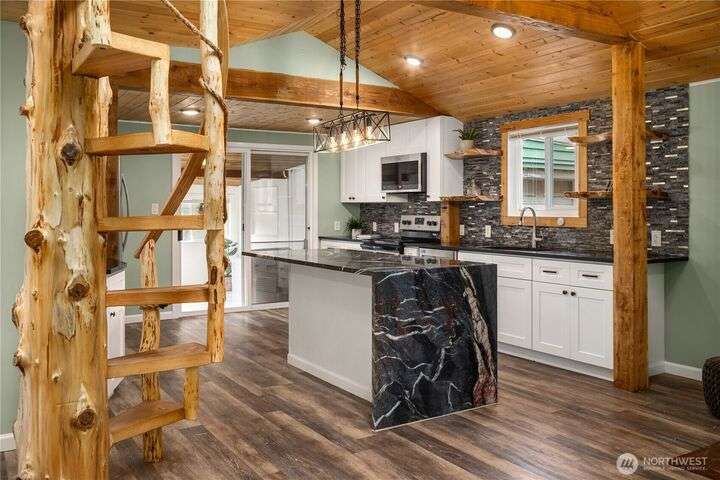 Gorgeous single-level home located in a convenient, prime location. Meticulously updated w/modern finishes throughout. The chef's kitchen boasts a sleek granite island, SS appliances, & floating shelves with unique, live wood edges, creating both style & functionality. Fresh paint, real wood, & updated flooring ensure every space feels inviting. The vaulted pine ceilings add to a warm touch, making this beauty even more welcoming. Enjoy the seamless flow into the fully fenced backyard oasis with mature landscaping that's perfect for entertaining. Featuring a garden shed, greenhouse, heat pump & solar for energy efficiency. Quiet neighborhood w/ easy access to Ballinger Lake, parks, restaurants, shopping, top-rated schools, & I-5 freeway.