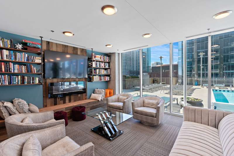 resort-style perks: 24-hour concierge (your human google for packages, reservations, dry cleaning), a heated pool with sundeck, fire pit, and stainless outdoor grills--basically your vacation spot, year-round. state-of-the-art fitness center, game room, and a movie theatre room (popcorn not included), business center + building-wide wifi included in the HOA (because working from home should still feel first-class).