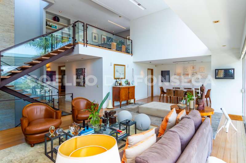 Living com pé-diretio duplo, lareira e varanda com vista espetacular. Cozinha interligada com sala de almoço, family room com vista para a área externa. Jardim espaçoso, espaço gourmet e piscina. Escritório e 4 suítes bem iluminadas. Suíte master com closet e banheiro amplo. Localizada próxima à Praça do Pôr-do-Sol e com fácil acesso à Av Pedroso de Morais e Av Brigadeiro Faria Lima.