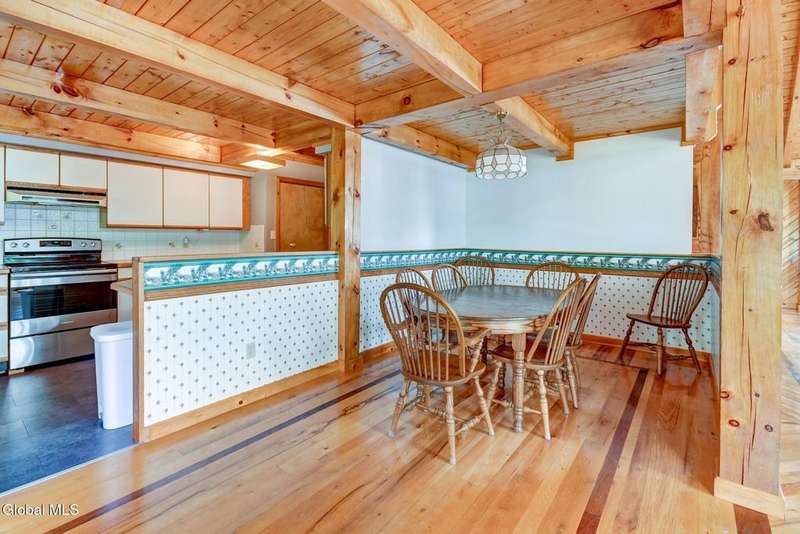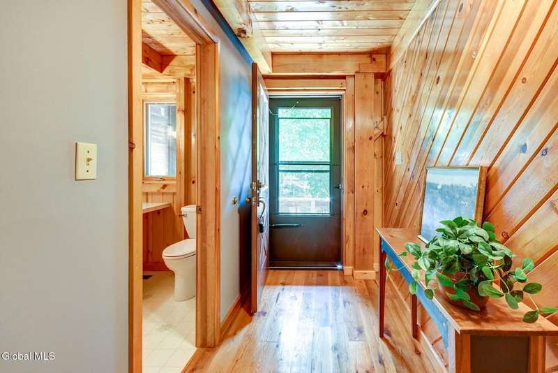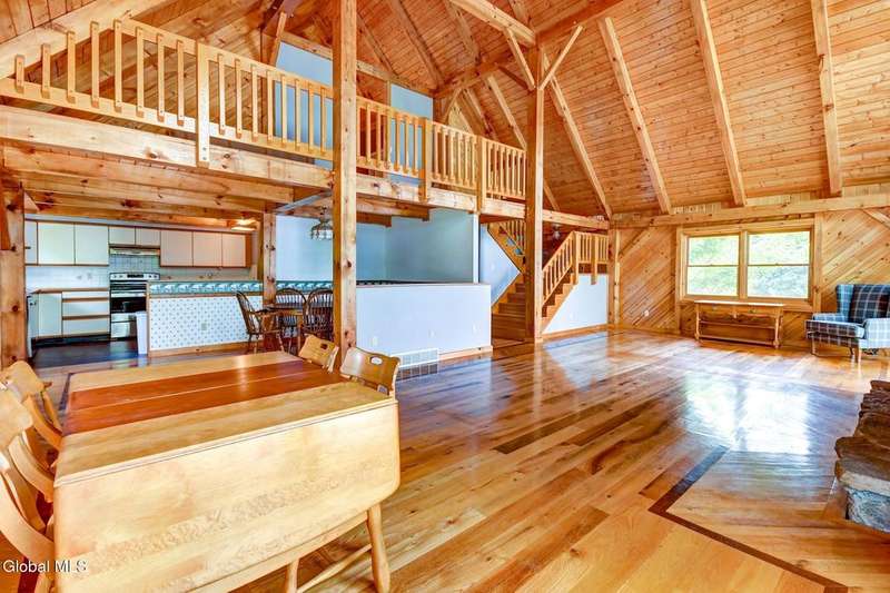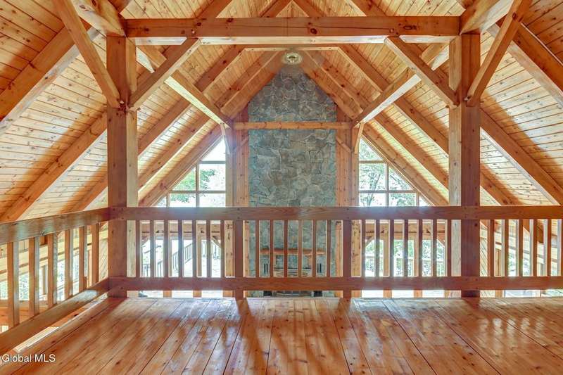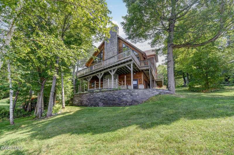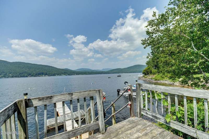OPEN HOUSE: Sunday, October 5th from 10am - 12pm. This exceptional 5-bedroom, 3-bath post-and-beam home offers 82.8 feet of direct lake frontage on the pristine Great Sacandaga Lake. With sweeping mountain views and unforgettable sunsets, it's the perfect year-round retreat. Located in low-tax Saratoga County, this 2,670 sq ft home features stunning oak floors with black walnut inlay, vaulted ceilings, and bright, open living spaces. The main floor includes a spacious primary suite with a walk-in closet, while the upper level boasts a large loft overlooking the lake, a dedicated office, three additional bedrooms, and a full bath. The walkout basement offers limitless potential?whether you're dreaming of a game room, gym, guest suite, or expanded living area. Just a short 30-minute drive to Saratoga Springs or Lake George. Dock included.