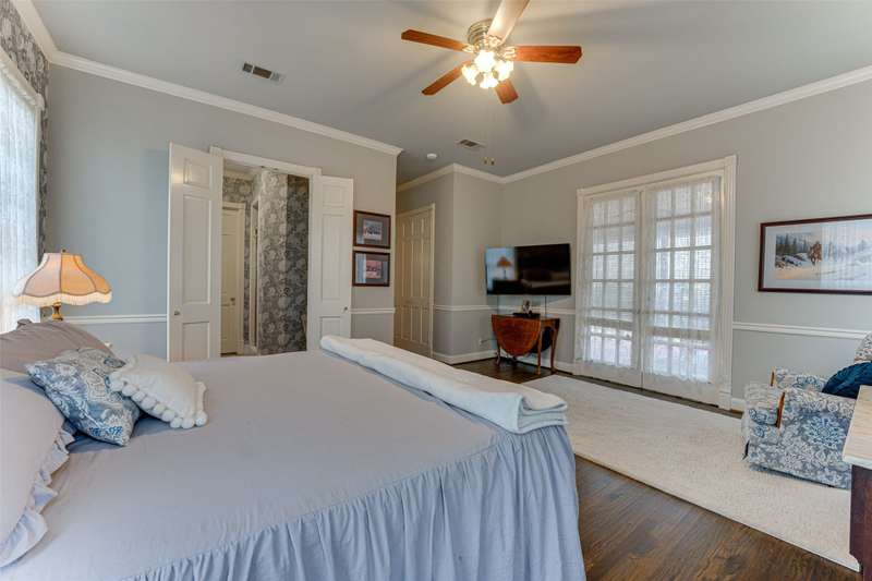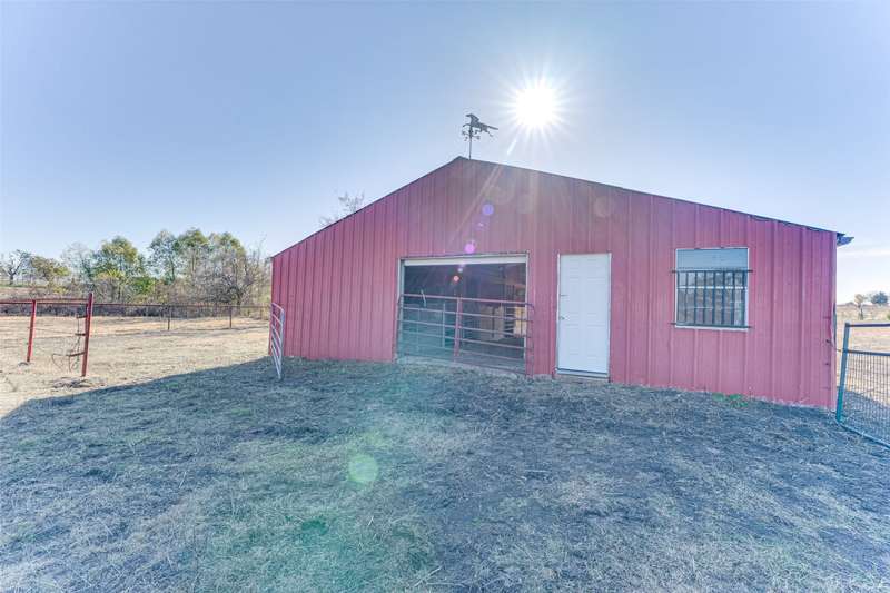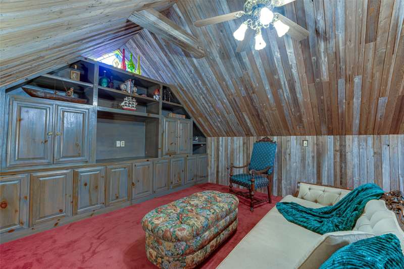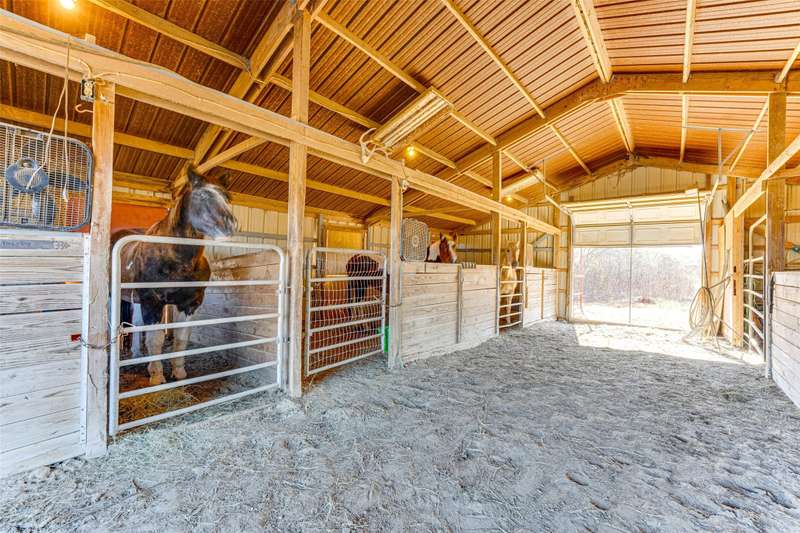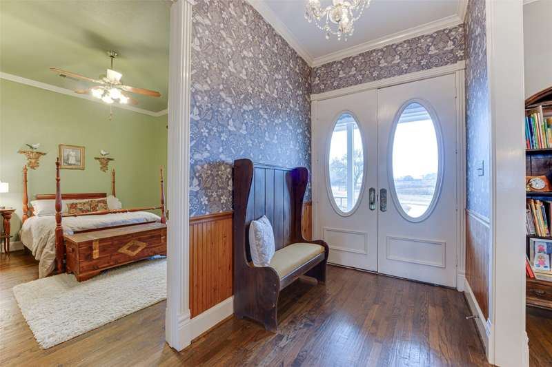 Timeless Farmhouse Charm on 14 Acres in Rockwall. Discover the perfect blend of rustic elegance & modern updates with this enchanting farmhouse, tucked away on 14.04 private acres. Just minutes from schools, shopping, and I-30, this property offers a serene retreat with a pond, barn, & picturesque views. Beautiful dormer windows, two full stone chimneys & glass doorknobs evoke the charm of yesteryear and add to the farmhouse appeal. Handscraped wood floors & 8-foot doors add timeless sophistication throughout. The spacious living areas include a large eating area featuring a wood-burning stone fireplace that opens to the updated kitchen, with gas range, breakfast bar, walk-in pantry & glass-front cabinets. Oversized family room offers a fireplace w-gas logs, antique mantle & custom corner built-ins. Primary Suite is on the main floor & boasts hand-scraped wood floors, 2 closets & doors leading to back patio, perfect for enjoying tranquil mornings watching the sunrise! Downstairs guest bedroom includes a full bath with clawfoot tub. 2nd floor has 2 spacious bedrooms, 1 featuring a built-in desk & shelves, the other offers a built-in window seat & shelves+large closets & updated full bath w-double sinks. 3rd floor retreat is a treasure that offers a media room (man cave) accented w-reclaimed barn wood, built-in desk, cabinets & wet bar. Additional highlights include front & back porches designed for soaking in sunrises and tranquil views of the serene setting. Whole-house fan & walk-in attic add practical charm. Property includes a 42x36 barn complete with five stalls, wash stall, tack room, water heater & electricity. Smooth-wire fencing. Updates include a metal roof, A-C & heating units, water heater, kitchen & more! This private, fenced property combines farmhouse elegance with modern convenience, making it perfect for those seeking a peaceful lifestyle with easy city access.