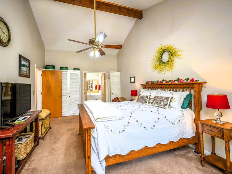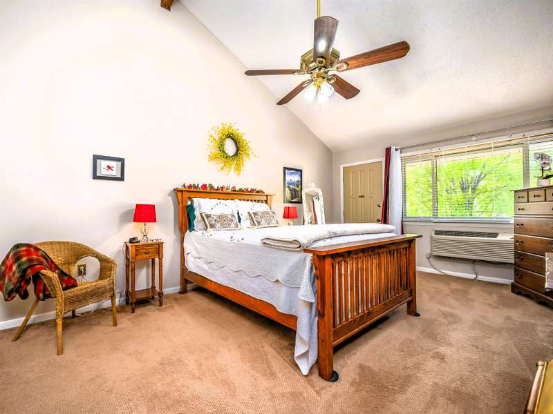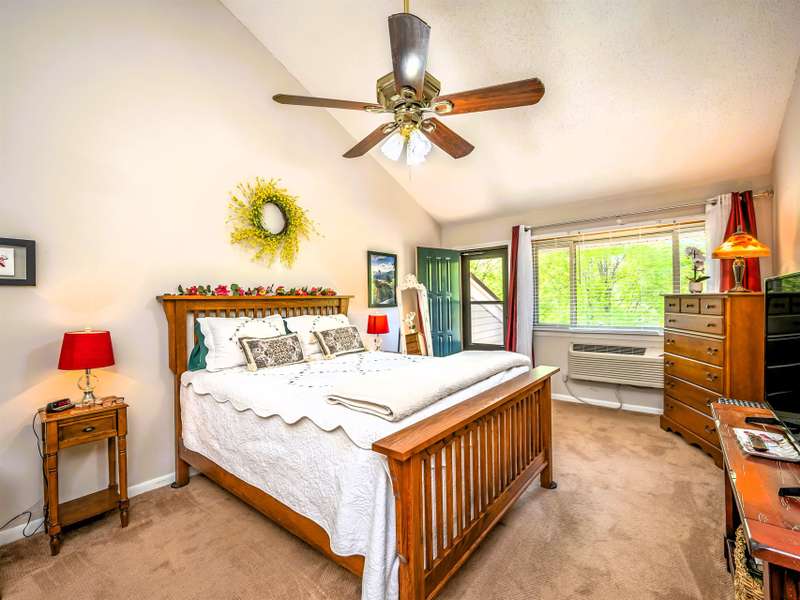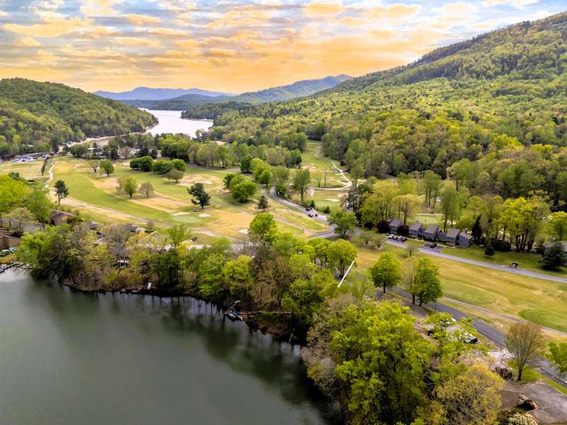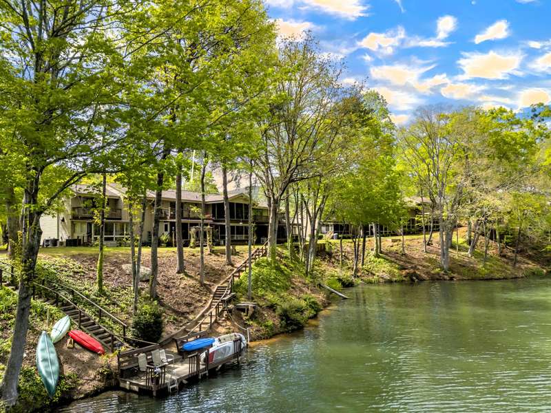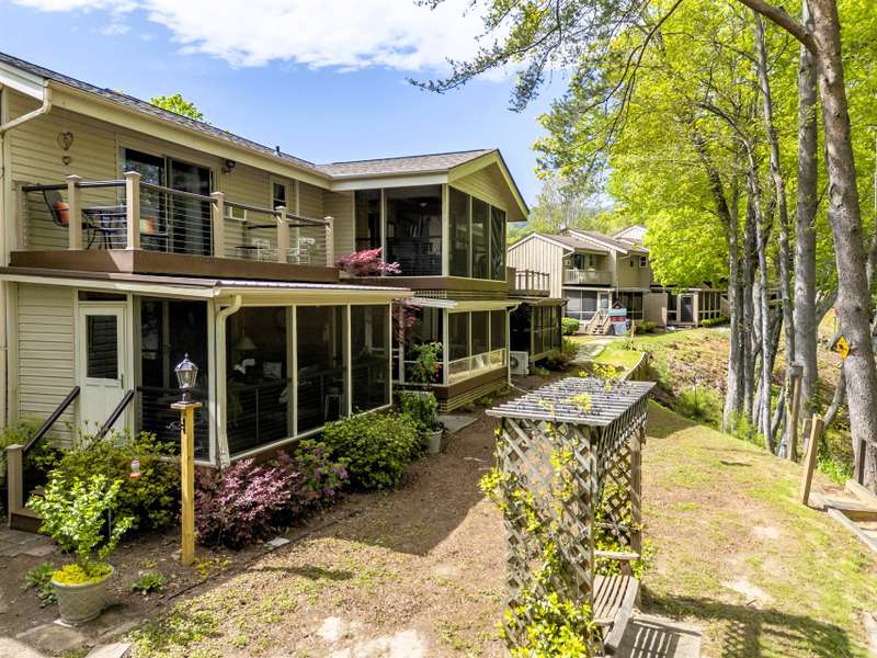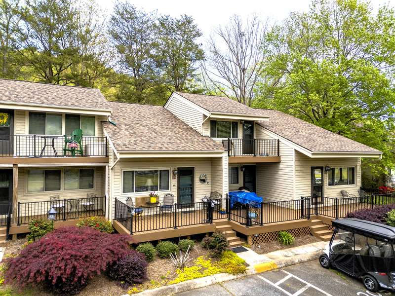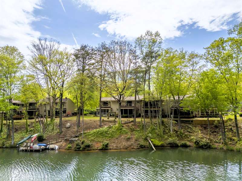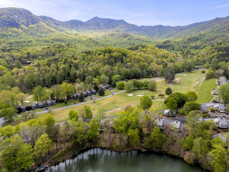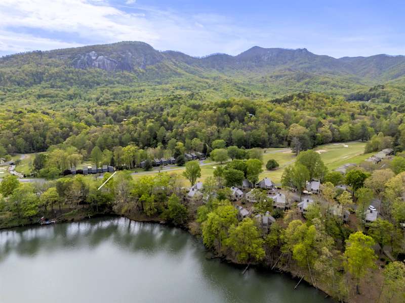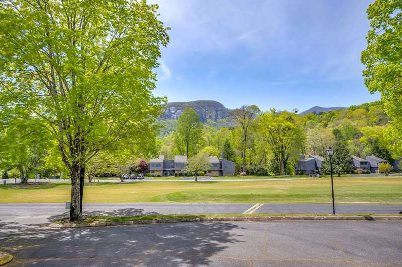 Fall in love with this lakeshore 2-bed condo! Enjoy year-round views of Bald Mountain Lake and Youngs Mountain from your screened-in porch, and be awed by spectacular fall colors! Rumbling Bald Mountain, and Bald Mountain Golf Course are easy to see from the front deck ?put your mind at ease by enjoying natural beauty from all angles. The dock is a great place to launch canoes, kayaks, or paddleboards. Bedrooms boast en-suite bathrooms. Use this condo as a vacation home or investment property by offering it for vacation rentals. Those preferring full-time living will appreciate the sense of community at Fairway Villas. Part of the Rumbling Bald community, amenities include private beach, private marina, 2 championship golf courses, 3 pools, 2 restaurants, fitness center, spa, salon, tennis courts, basketball courts, walking trails, mini-golf, and more. Most furniture conveys with acceptable offer.
