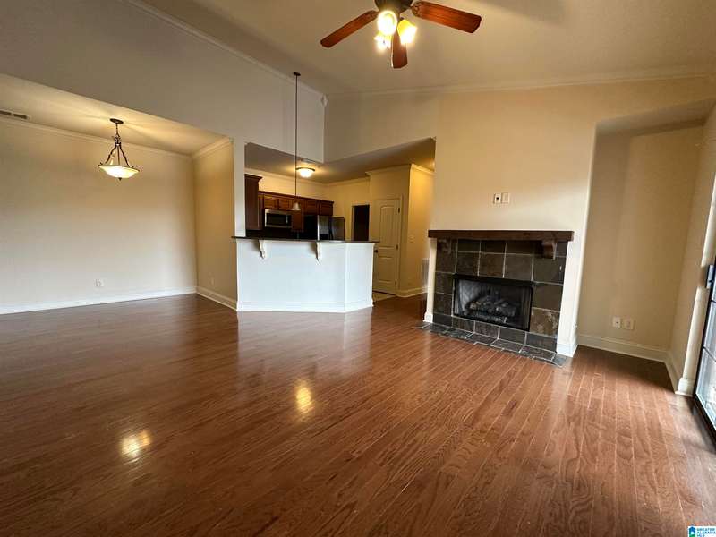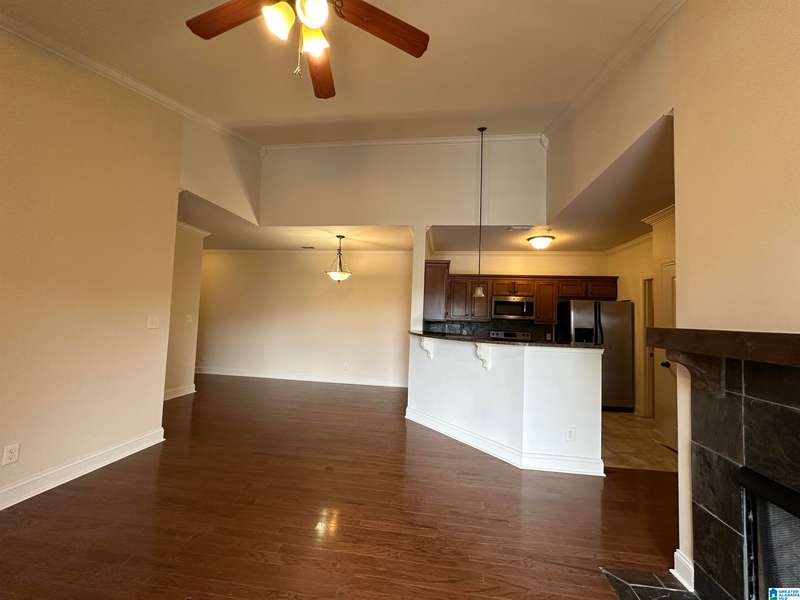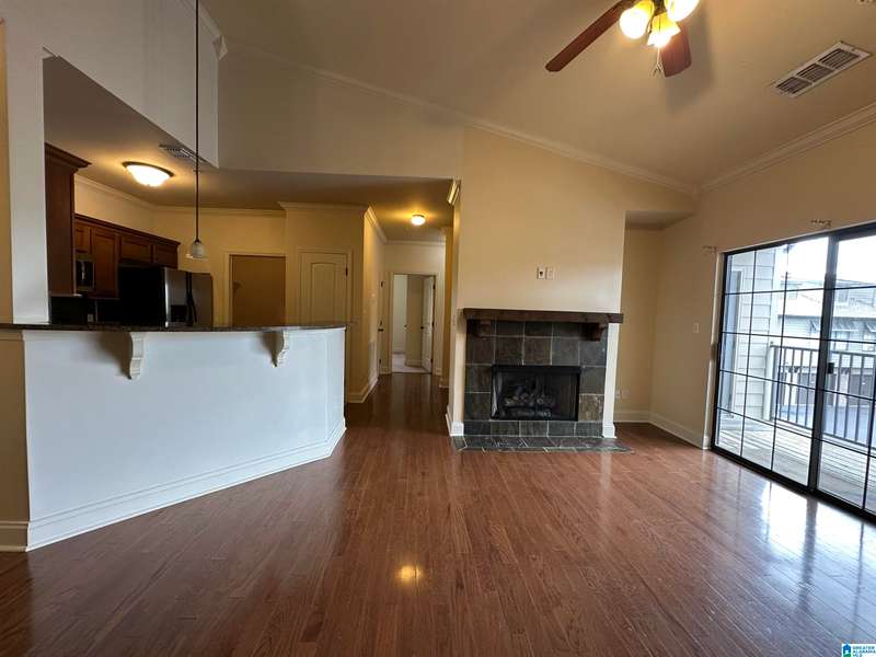 This hidden gem offers the perfect blend of tranquility and convenience. Welcome to The Overlook on Riverhaven, a well-maintained gated community offering access to a pool, clubhouse, and 24-hour fitness center that is located in the much-desired Hoover school district. This 2nd floor, 3-bedroom, 2-bath condo has a thoughtfully designed open floor plan, and features hardwood and tile flooring in the living areas, a gas-log fireplace and large walk-in closets. Exceptional amenities include high speed internet, cable included in the monthly HOA fees and offers an optional garage. Located near Costco, the Galleria, and Patton Creek shopping - and lots of terrific restaurants. Perfectly suited for those seeking a low-maintenance lifestyle in a serene yet connected community, this condo is a rare find. Don't miss it!