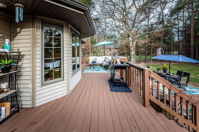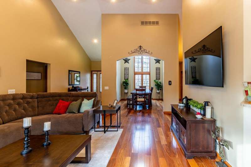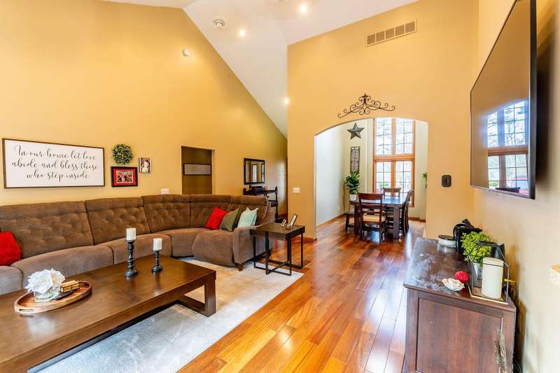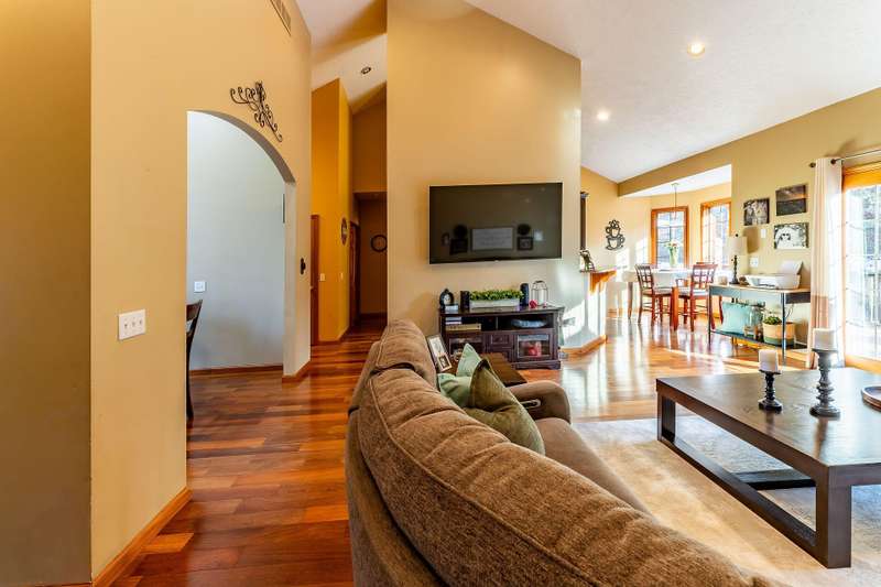 Welcome home to 7016 Hyde Park! As you enter the front door of this lovely, well built 4 bedroom, 3 bathroom executive ranch home, you'll appreciate the soaring 17' ceilings, gorgeous Brazilian teak wood floors and stunning kitchen with beautiful solid surface countertops. There is so much room in this home for entertaining, inside and out! You will be thrilled to find that the main floor laundry is in the large master suite! The main level is made complete with a formal dining room, two additional bedrooms as well as another full bathroom. Downstairs you'll find a large family room as well as rec area, complete with an incredible bar area, another full bathroom and bedroom. There is an additional non-conforming bedroom in the basement as well as walkout access to the yard. New furnace and a/c as well as new septic in 2024.