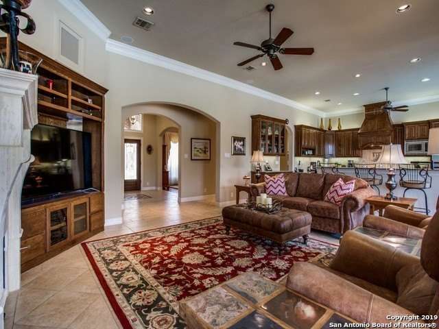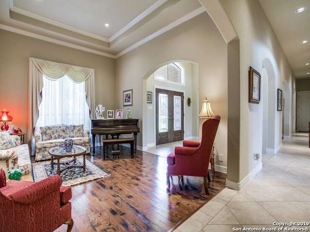 Luxury, privacy, and convenience meet in this exceptional single-story custom home on a tree-studded corner lot over 1 acre in size.** A circular driveway leads to an oversized 3-car garage with a private side entrance-ideal for guests or catering. Built in 2005, the home features high ceilings, rich wood and tile flooring, custom millwork, central vacuum, and a bright open floor plan designed for both everyday living and grand entertaining. The formal living and dining areas flow seamlessly into a spacious family room with a cozy fireplace and direct views of the sparkling pool. The chef's kitchen boasts high-end appliances, custom cabinetry, and generous prep space. Additional highlights include a private office, expansive game room, and a split master suite with a spa-like ensuite bath. Outside, enjoy a covered patio with built-in heaters, solar screens, and a gas grill, all overlooking your private backyard oasis. The pool, spa, and sport court-perfect for basketball or pickleball-make this home an entertainer's dream. Mature trees, a drinking faucet, and park-like grounds create a serene escape, while the central location offers easy highway access and is just steps from a neighborhood park.