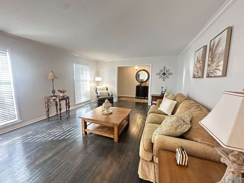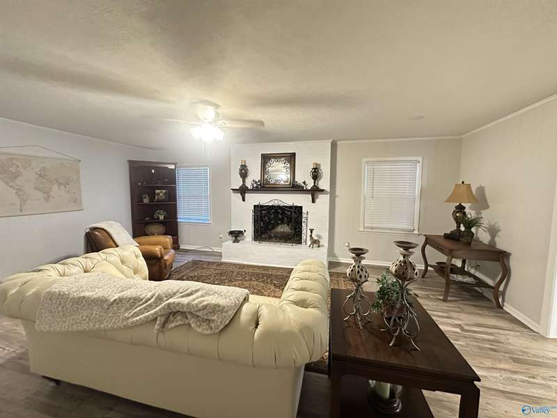Charming Home in Downtown Attalla--Welcome home front porch w/columns & cozy sitting area, Large entry foyer, LR/DR combo w/full length windows; Kitchen w/lots cabinets & counter space (Breakfast area); Den w/built-ins & brick fp; 3BR/2BA; Hdwd & laminate flooring; WICs; Gated back entrance w/carport; detached bldg; Across the street from 1st Baptist Church Attalla. Walking distance to Historic Downtown Antique shopping!