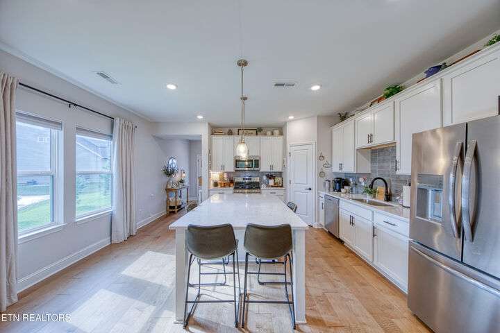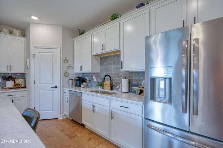 4BR/2.5 BA with open floorplan and brick/vinyl exterior. 4th BR or Office on main level. Large open kitchen with 42 in. white cabinets, quartz counters, gas range, microwave and dishwasher, island. Gas log fireplace, gorgeous owner's suite with luxury bathroom upgrade, tiled shower, frameless glass door, quartz counters, 2 oversized walk-in closets. Hardwood in main living area Only 1 year old and located near Shopping, Schools, Restaurants, Hospital and Interstate within minutes. Don't miss out on this hidden gem tucked in a cul-de-sac with a new privacy fence. Move in ready. Schedule your showing today !! Washer Dryer and Refrigerator do not convey
