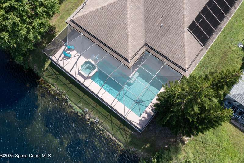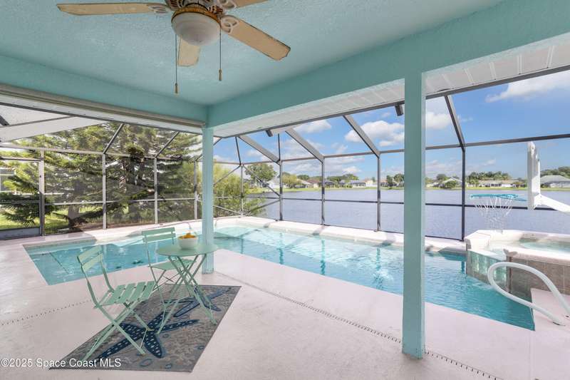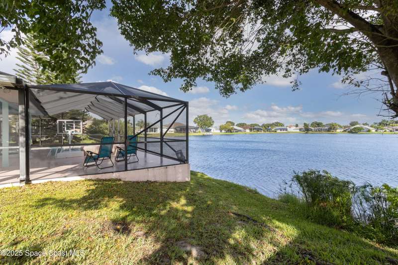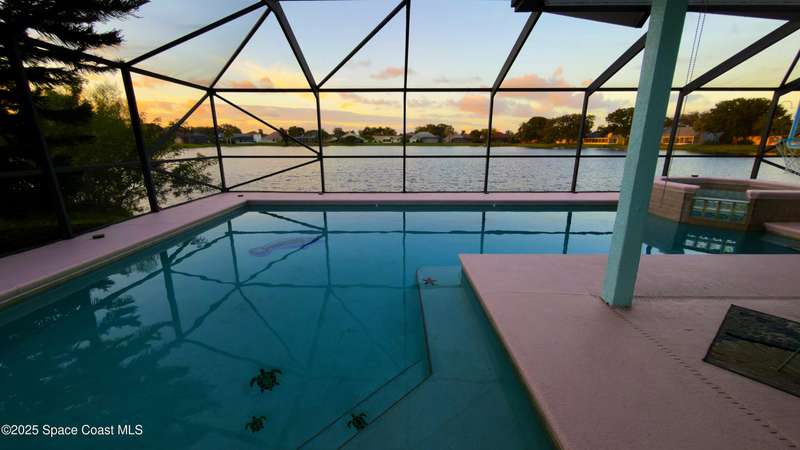 NEW ROOF COMING! Welcome home to your private piece of paradise in the heart of Viera. This 3 bedroom, 2 bath beauty was thoughtfully designed for both everyday comfort and unforgettable Florida weekends. Step inside to find elegant formal living and dining spaces, perfect for family gatherings or quiet evenings in. Just beyond, sliding glass doors open to a spacious lanai overlooking your sparkling pool, soothing spa, and tranquil waterfront views. Enjoy morning coffee as the sun dances across the lake, or unwind with sunset cocktails while gentle breezes drift through .For those who love the coastal lifestyle, this property's riparian rights extend into the lake, giving you the rare opportunity to soak in the serenity of waterfront living with sweeping water views, a perfect blend of indoor and outdoor spaces, and unbeatable proximity to Viera's shopping, dining, and beaches this home is for you!