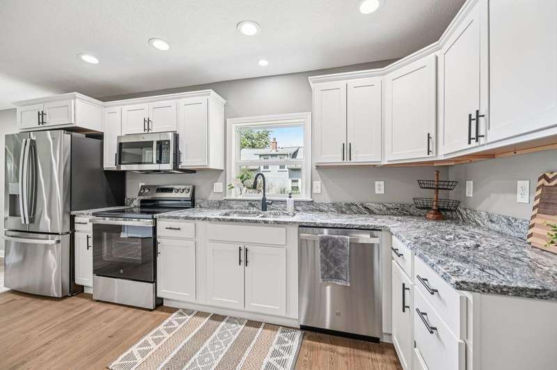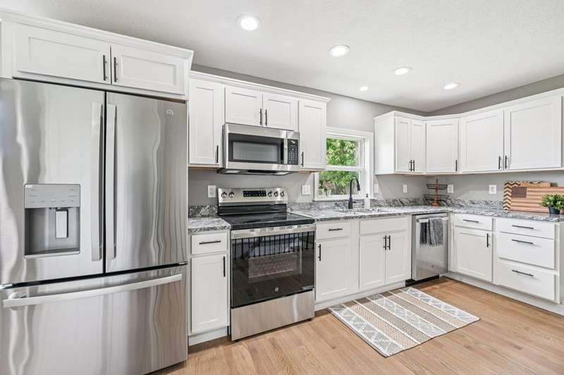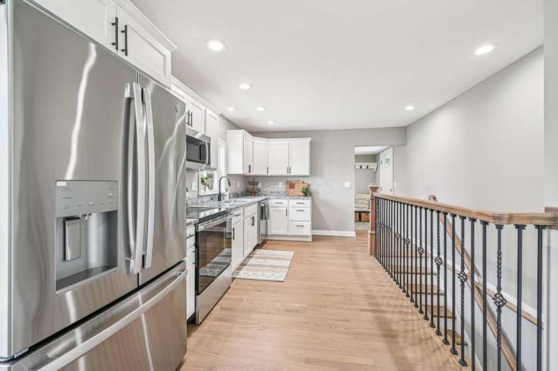Freshly remodeled 3-bedroom, 1-bath ranch on just over 1/2 acre with fenced rear yard! This move-in ready home features beautiful oak hardwood floors throughout most of the main level, including all bedrooms. The spacious living room offers a gas log fireplace, ceiling fan, and plenty of natural light. Brand new custom kitchen includes white cabinets, granite countertops, stainless steel appliances, recessed lighting, eating space and pantry.Enjoy outdoor living on the rear covered porch overlooking the fully fenced yard. The oversized 2-car garage provides ample space for vehicles and storage. First-floor laundry/mudroom with built-in bench and coat rack adds convenience. The full basement offers additional storage or potential for finishing.Recent updates include: siding, windows, insulation, hot water tank, gutters, electrical, and more. Covered front porch perfect for relaxing. This home combines modern updates with classic charm?don't miss out!