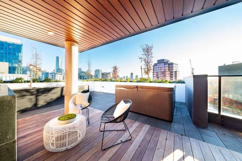 Welcome to The Cardero Penthouse. This is a wonderful opportunity for you to live in this unique penthouse with its own private roof garden (595 sq. ft.) complete with hot tub plus Wolfe BBQ & fridge. This 1662 sq. ft. two bedroom/two bath suite features 11 ft ceiling with expansive floor to ceiling windows capturing the ocean, marina, mountain & city views. This spacious open plan living, dining & kitchen opens on to the patio for you to soak in the views. The kitchen is luxuriously finished with the finest millwork plus all premium Miele appliances. A private two car garage with a large storage room and additional 3rd parking w/EV charger comes with this suite. Steps to Stanley Park, Sea Wall, shopping & fine dining venues. An incredible location, the best urban lifestyle.