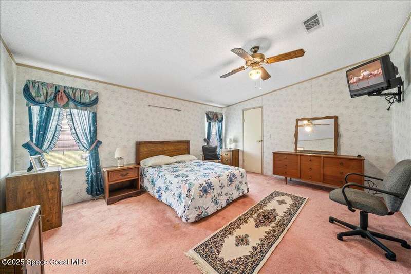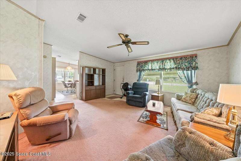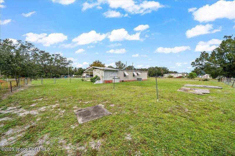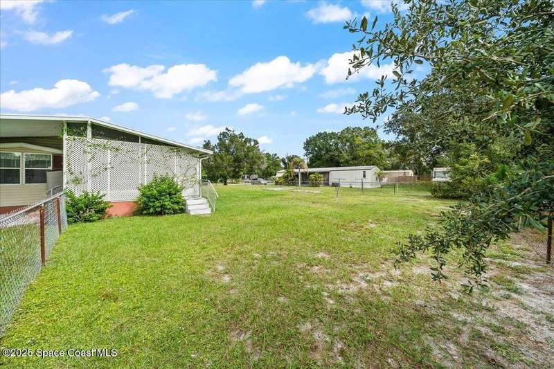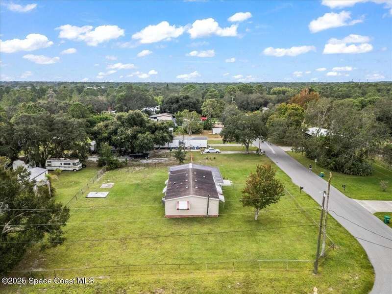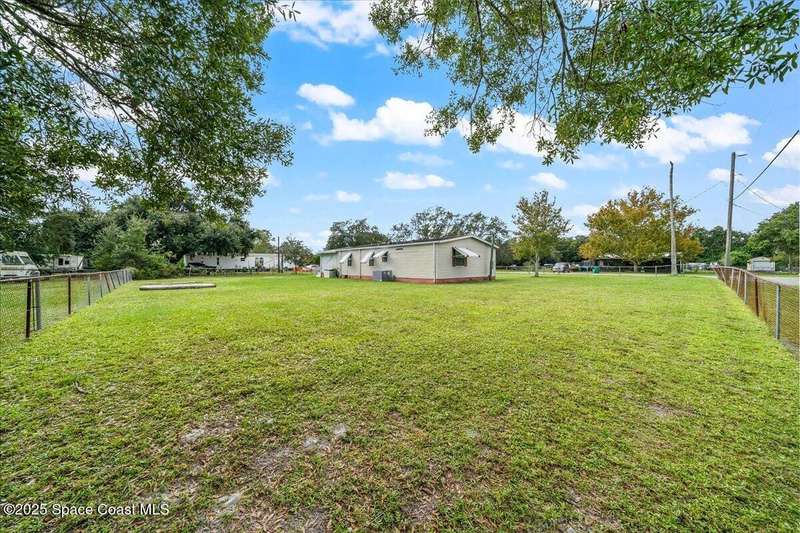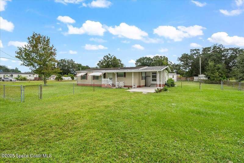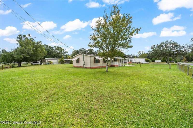 Spacious 3BR/2BA manufactured home on a rare .43-acre oversized lot! Enjoy NO HOA and no land lease; and plenty of room for RVs, boats, and trailers with easy access parking on this large corner lot. The fenced yard offers privacy and space to add a pool, workshop, or garden. Inside, an open floor plan features a bright living area, eat-in kitchen, and comfortable bedrooms. Furnished and move-in ready! Ideal for homeowners, investors, or snowbirds. Conveniently located just 20 minutes to Cocoa Beach, 25 minutes to Kennedy Space Center, and 40 minutes to Orlando International Airport (MCO). Experience Florida living with space, flexibility, and freedomdon't miss this property with endless potential and room for all your toys!