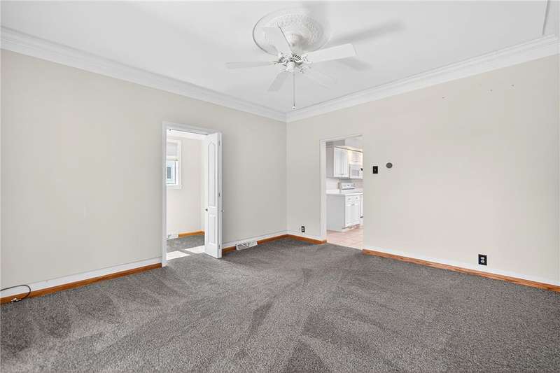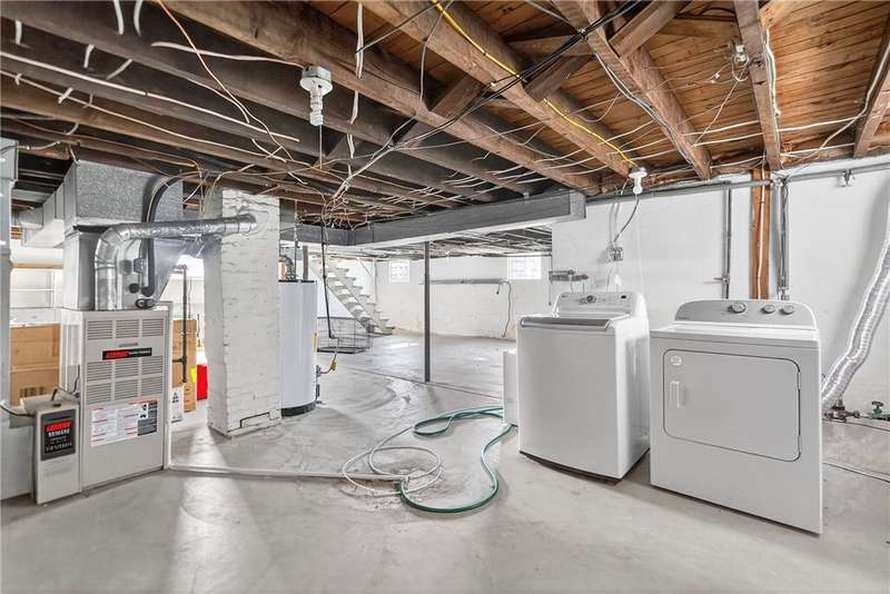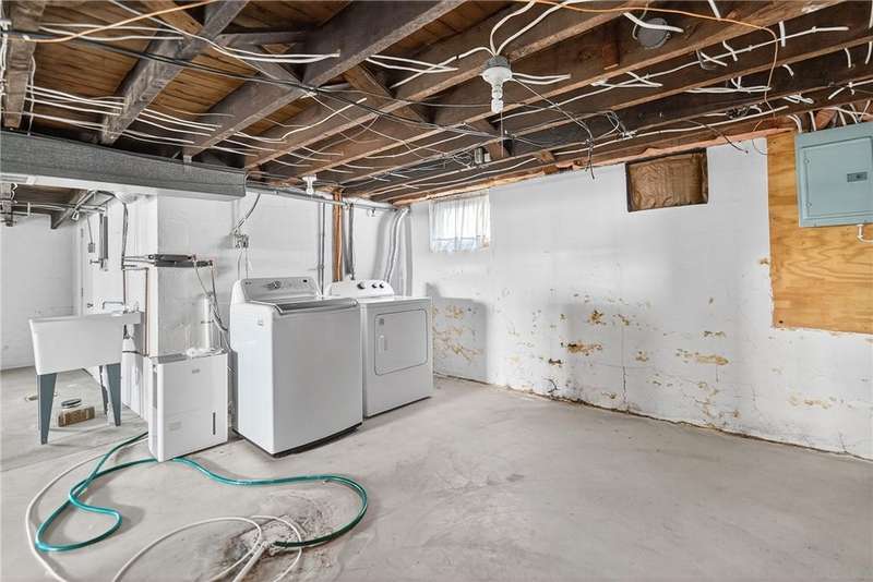 Charming move-in ready, level entry ranch in the North Huntington community. Enjoy your morning coffee on the covered front porch or backyard views from the smaller side porch. Enter this freshly painted and nicely updated home through the large entry/sitting room. The main level features high ceilings, a comfortable living room, a large and bright eat-in kitchen w/appliances included, two bedrooms and a full bath. Tons of storage throughout! The expensive lower level includes a laundry area with washer/dryer, large workbench for projects and could be converted to a future game room with additional bathroom. A bonus 2+ car detached garage adds room for vehicles and hobbies. Fantastic location close to Route 30, Turnpike, shopping, restaurants, and Norwin schools.