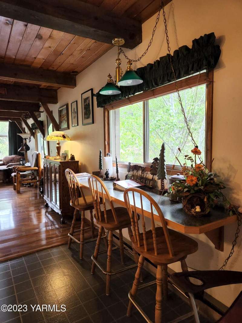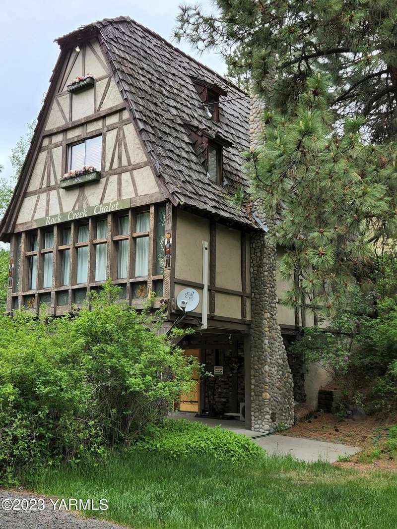 This unique landmark home on Chinook Pass is an absolute must see. Much of the interior has been updated sporting breathtaking craftsmanship. The Scandinavian style timber frame is hand carved with decorations around the home. The wood stove heat with electric heat also available makes this a perfect mountain retreat year-round. 2bdm, 2 bath with 2nd floor loft, provides plenty of room for daily living or seasonal rental for additional income. Zoned R10/5.