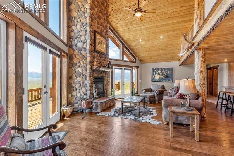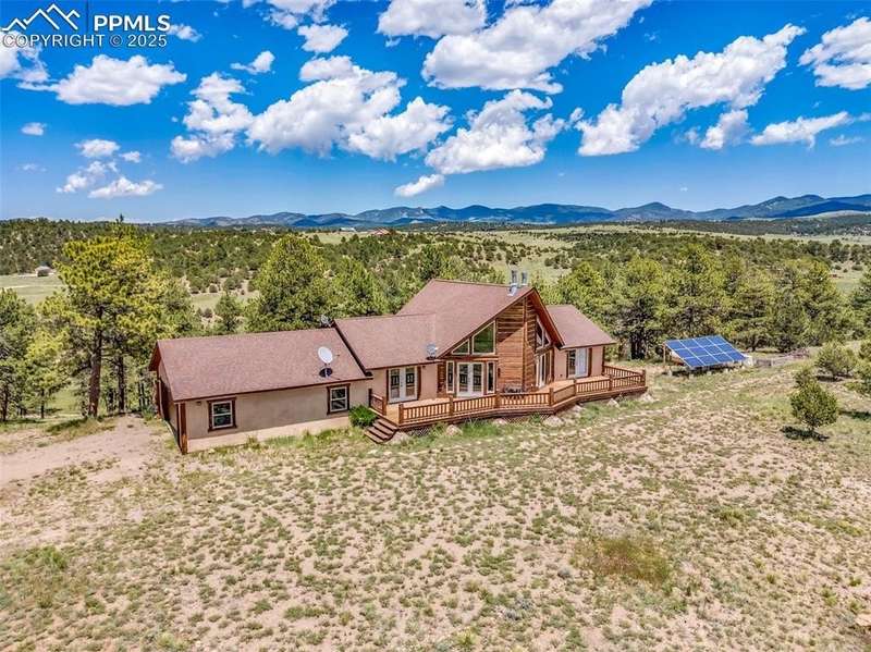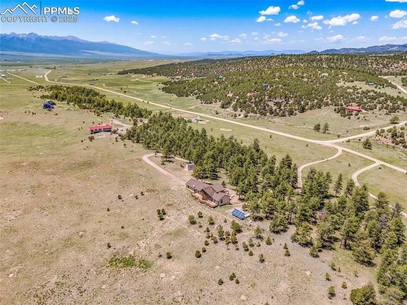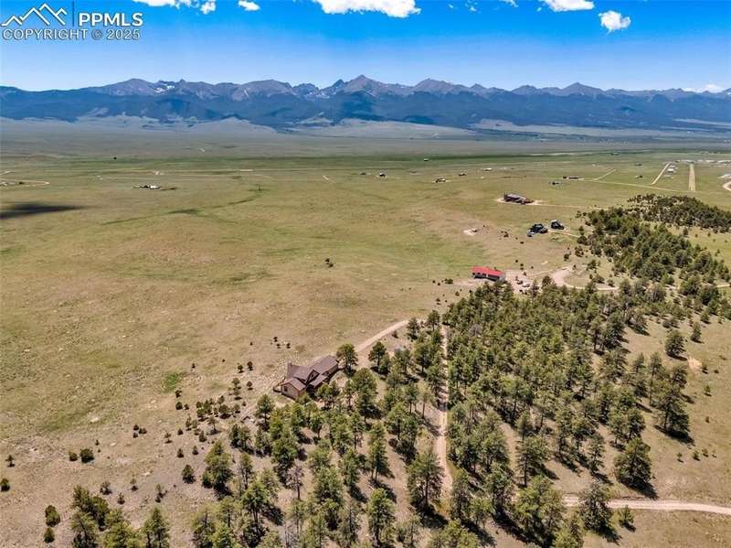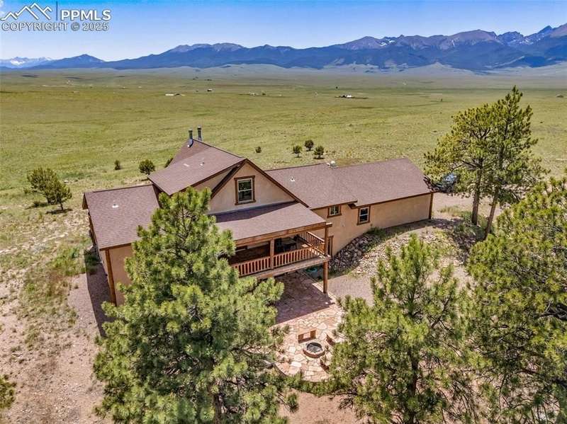 Discover this exceptional custom-built 3-bedroom, 4-bathroom home on 35 private, partially treed acres with breathtaking, unobstructed views of the Sangre de Cristo Mountains. Blending rustic mountain charm with modern comforts, this property offers an ideal retreat for those seeking privacy, natural beauty, and a true Colorado lifestyle. The main level features soaring vaulted ceilings, a dramatic floor-to-ceiling stone fireplace, and expansive windows that flood the home with natural light while framing panoramic mountain views. Live edge wood accents add warmth and character. Two spacious main-level bedrooms include a luxurious primary suite with ensuite bath and deck access — perfect for sunrise coffee or sunset relaxation. The open kitchen offers ample cabinetry, generous prep space, and a layout designed for entertaining. Upstairs, a versatile loft works beautifully as an office, reading nook, or studio. The full walk-out basement provides a massive second living or recreation space, plus a private third bedroom with ensuite bath. Step outside to enjoy a lower patio, elevated deck, and a secluded fire pit area tucked into the trees. With 35 acres, this property offers endless possibilities — from keeping horses to simply enjoying the peace and privacy. Solar power adds energy efficiency, and the location is just minutes from the vibrant mountain town of Westcliffe, known for its shops, restaurants, and Dark Sky stargazing. Experience Colorado mountain living at its finest.