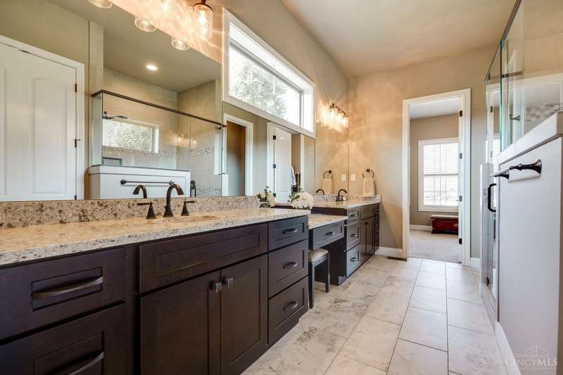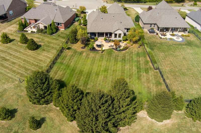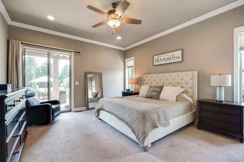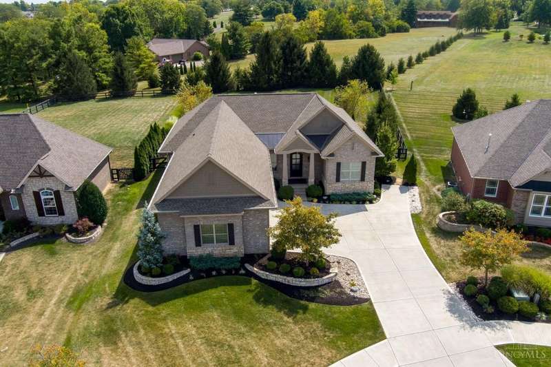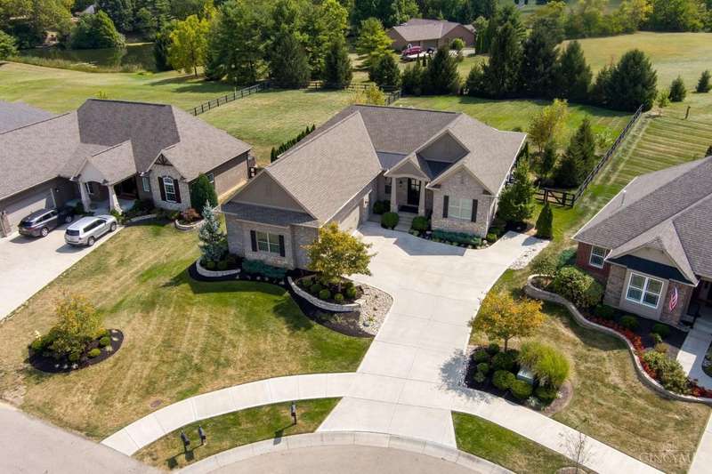 Stunning custom ranch by John Candle Artisan Homes (2019) in the Carriage Hill Community, offering 1st-flr living w/5 brs, 4.5 ba & over 4,100 SF High-end finishes include tray ceilings, custom lighting, quartz & stone countertops, and built-in cabinetry throughout. The grand primary brm features an ensuite bath, walk-in closet w/custom built-ins & access to the back patio. The finished LL is ideal for multi-generational living or a home business, featuring a private staircase to the garage. It also includes a rec room and bar area with a custom wet bar, wine fridge, microwave, and 2 bedrooms w/ensuite baths and walk-in closets. Outdoor living shines on .5 acre cul-de-sac lot w/tree-lined backyard, green space behind, covered porch, flagstone patio, fire pit & fenced yard. Addl. highlights include an oversized 3-car garage, prof. landscaping w/lighting & irrigation & whole-house generator. Community amenities incl. 2 pools, comm. barn, Adult clubhouse, 17 stocked ponds & walking trls.