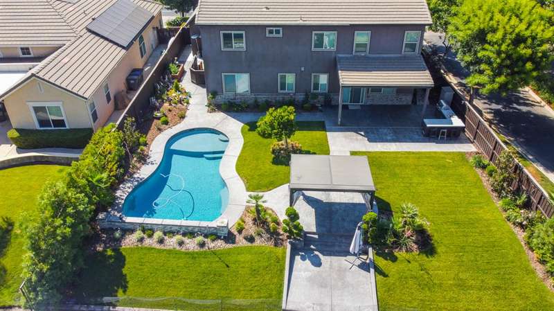 Welcome to your dream home in Clovis, beautifully situated on a corner lot in a picturesque gated community, boasting breathtaking lake views and a wealth of amenities. The exterior features charming brickwork and lush landscaping that greets you as you arrive. This exquisite property features spacious living areas filled with natural light, creating a warm and inviting atmosphere. Enjoy two dining rooms perfect for family meals and entertaining guests, along with a gourmet kitchen showcasing sleek cabinetry, high-end stainless steel appliances, and a large island ideal for meal prep and casual dining. With 4 spacious bedrooms and 4.5 bathrooms, including a serene master suite with an en-suite bathroom, this home offers a private retreat for everyone. Ample storage throughout and a generous 3-car garage make it perfect for families needing extra space. Step outside to a beautifully landscaped backyard, complete with a sparkling pool and plenty of room for outdoor gatherings, all overlooking the serene lake. Located within walking distance to a highly-rated school, this community enhances your lifestyle with numerous amenities and events, making it perfect for families. Don't miss your chance to make this extraordinary lakefront home yours, schedule a showing today!