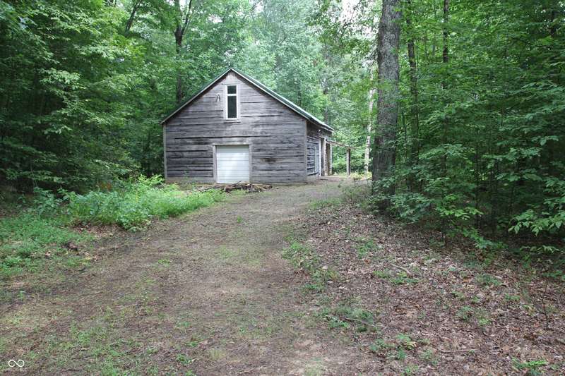 Opportunity to own a sizable Brown County property adjoining approximately 200 acres of Indiana Nature Conservancy land. Primarily wooded with a half-acre pond for fishing, paddle boarding and kayaking. Existing structure is partially finished with living space and and a storage area for your toys and equipment. A front door and two large garage doors provide access. Metal roof and a concrete floor. Nice wooden floors on the upper level. Roughed-in electrical and plumbing are in place. Conveniently located close to State Road 46, Columbus and Interstate 65. Timber has not been harvested for 20+ years. Property has historically been used for hunting. Hills and hollers abound. Escape from it all!