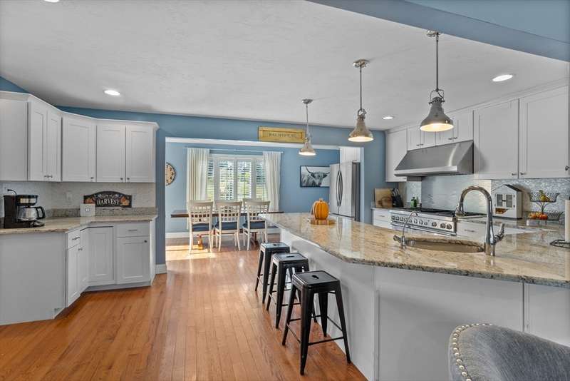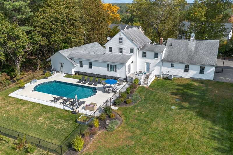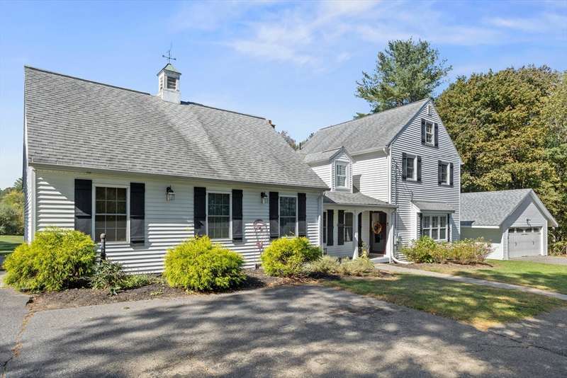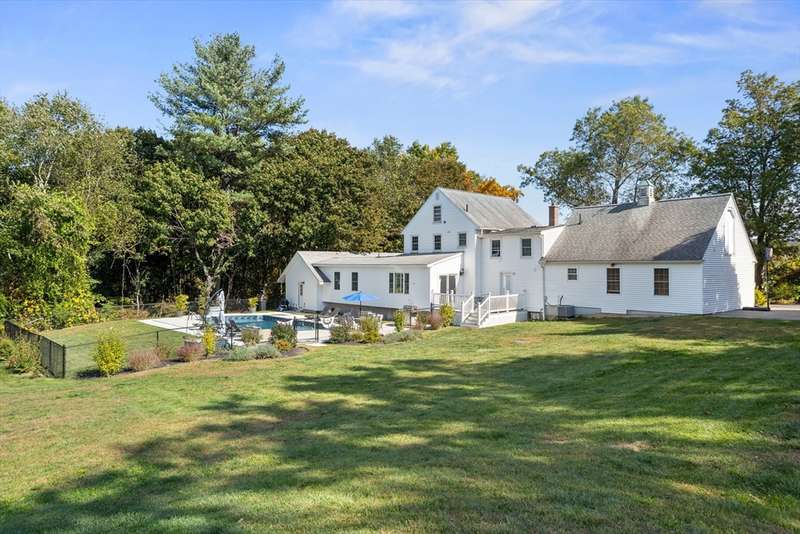 Own a piece of New England charm with this beautifully renovated farmhouse offering 4 bedrooms, 2.5 baths, and a dedicated home office. Timeless character meets smart updates: roof (2016), upgraded electrical, efficient heating/cooling, and a quality addition. The crisp gourmet kitchen features a walk-in pantry, Thermador 6-burner range with griddle and hood, abundant cabinetry, granite counters, and hardwood floors. An open, inviting family room with gas fireplace anchors the main level. The first-floor primary suite provides two walk-in closets and a spa bath with steam shower, plus a large first-floor laundry for daily ease. Step outside to your private retreat: a stunning heated, inground saltwater pool beside a tree-lined yard abutting conservation land ideal for relaxing and entertaining. An oversized garage, serene setting, and quick access to Worcester and Routes 190/290/12/110/140 add convenience. This turnkey New England home blends charm, comfort, and location!