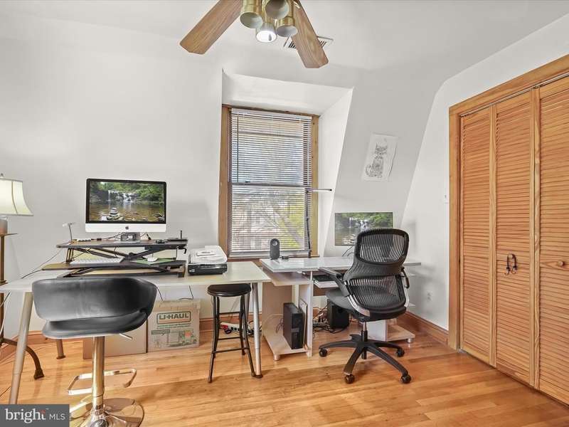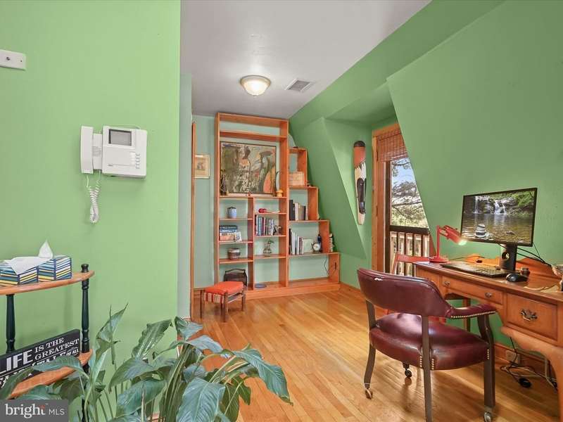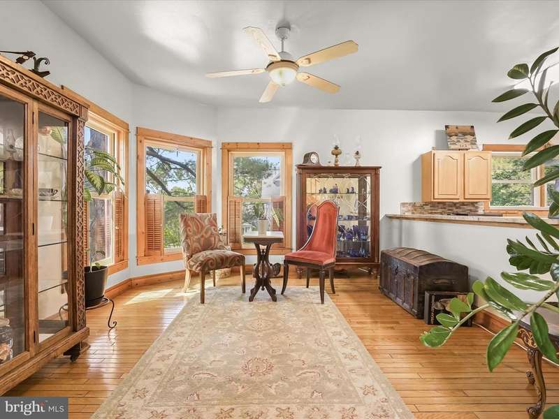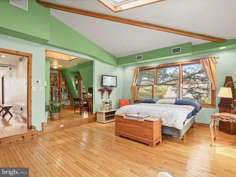 Nestled in the sought-after Woodbridge/Brookland community, this exquisite residence offers a rare blend of architectural elegance, modern amenities, and serene outdoor spaces. From the moment you arrive, the meticulously landscaped grounds and sophisticated curb appeal set the tone for the grandeur within. Step inside the main level and be greeted by rich hardwood floors, intricate architectural details, and a flood of natural light pouring through large windows adorned with plantation shutters. The formal dining room flows effortlessly into the gourmet kitchen, where a stone-surround gas fireplace, picture window with garden views, and recessed lighting create an inviting ambiance for entertaining. The kitchen is a chef's dream, featuring a central island with breakfast bar, stainless steel appliances, double sink, glass tile backsplash, ceramic tile flooring, ample cabinetry, and not one but two casual dining areas or sitting areas-perfect for intimate mornings and peaceful evenings. The living room, also boasting a stone-surround gas fireplace, offers exposed wood beams and direct access to the rear patio-ideal for relaxing or hosting guests in style. Upstairs, the luxurious primary suite is a true retreat, complete with a spacious sitting area, a vaulted ceiling, access to a private balcony, exposed beams, a skylight, and a spa-inspired en suite bath featuring double vanities and a walk-in, sauna-style shower. Two additional bedrooms and a beautifully appointed hall bath with a jetted soaking tub complete the upper level. The fully finished lower level offers exceptional flexibility. It features its own kitchen, bath, laundry, and potential for two additional bedrooms. With a private entrance, it's perfect for guests, extended family, or an income-generating rental. Completing this extraordinary property is a charming detached carriage house, thoughtfully converted into a studio with a full kitchen, bath, cathedral ceilings with exposed beams, skylight, ceramic tile flooring, and a cozy front porch-ideal for a guest suite, rental, or creative space. Conveniently located near major commuter routes, including US-1, US-50, metro stops, and I-695. This exceptional home offers upscale city living with space, privacy, and timeless elegance.
