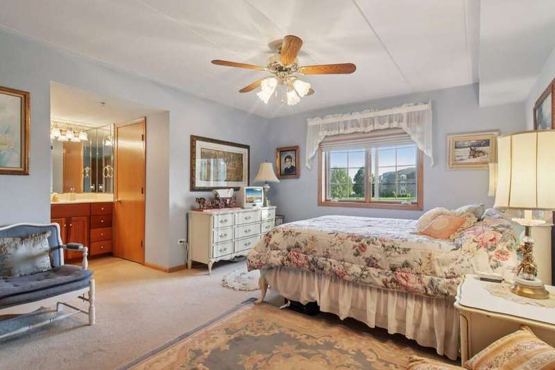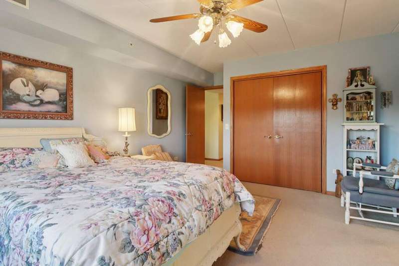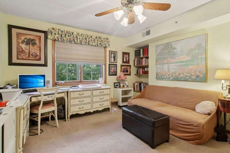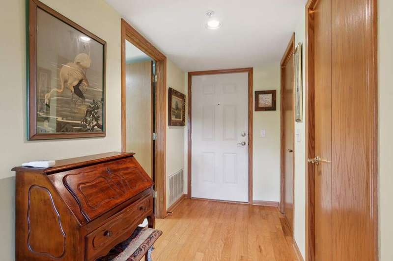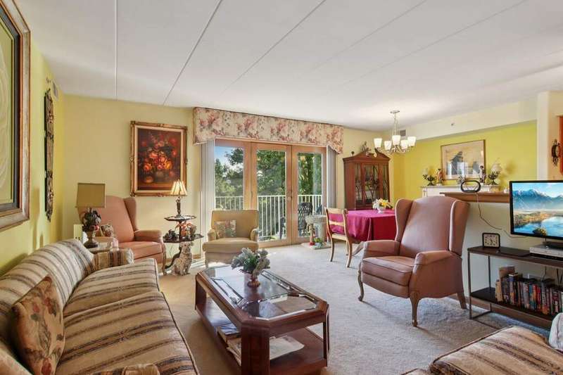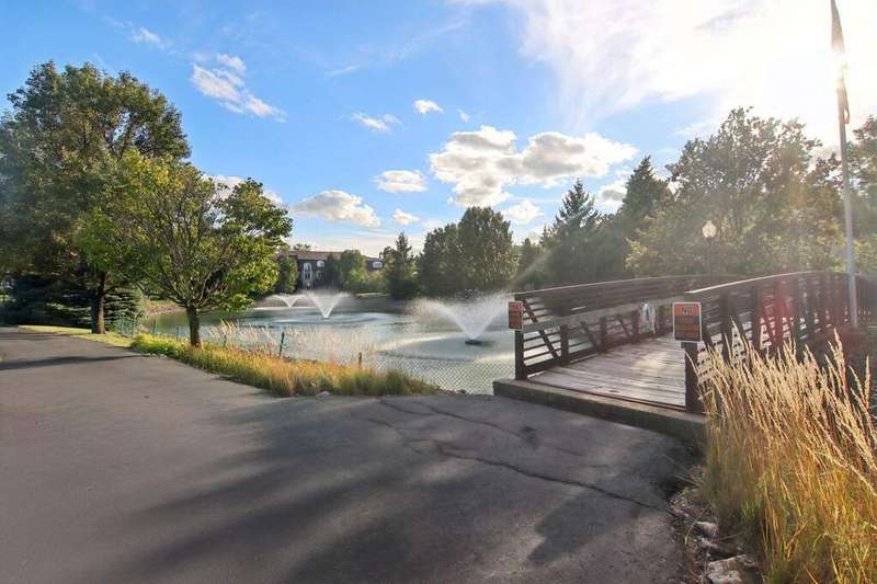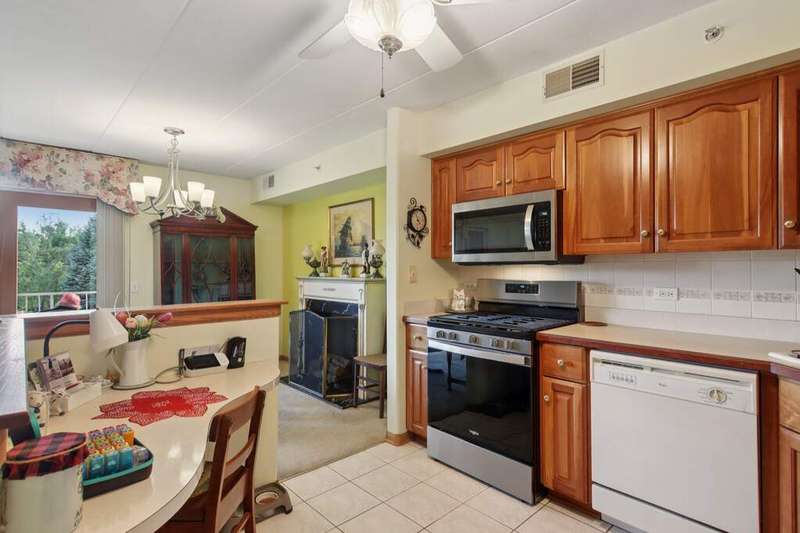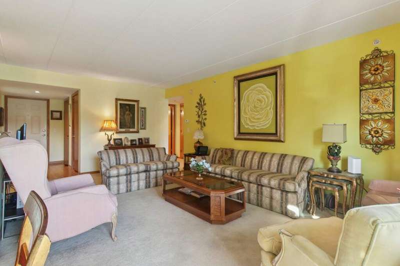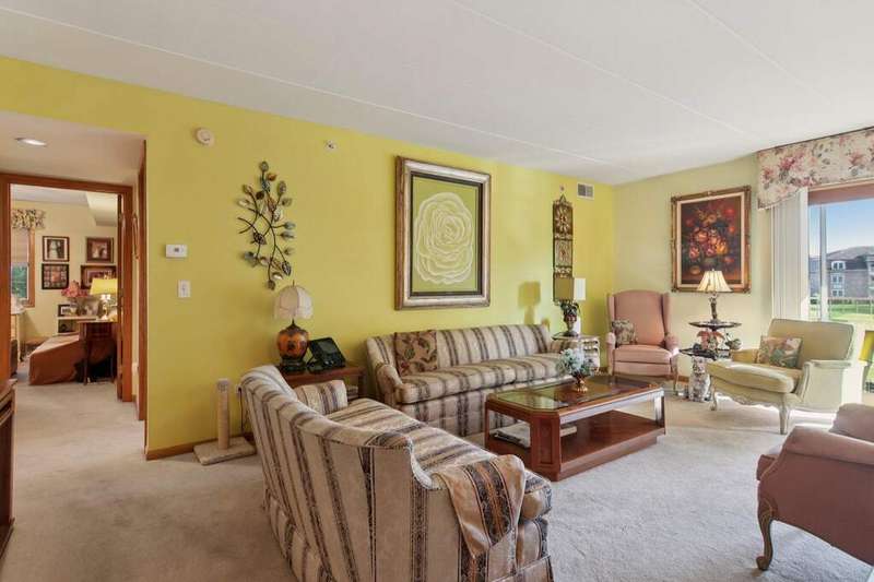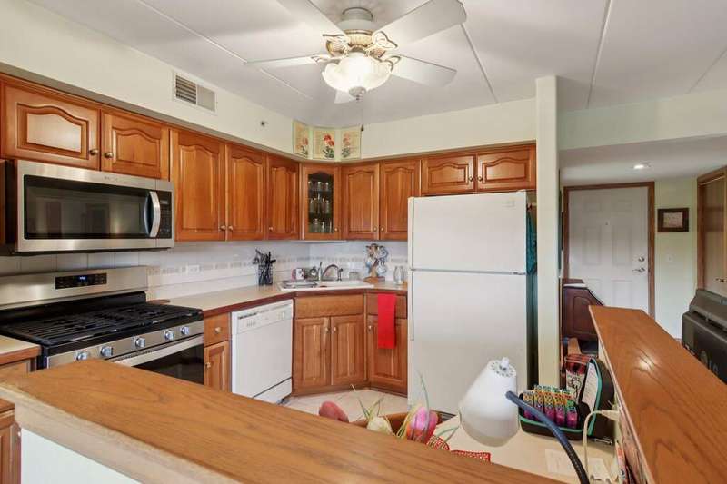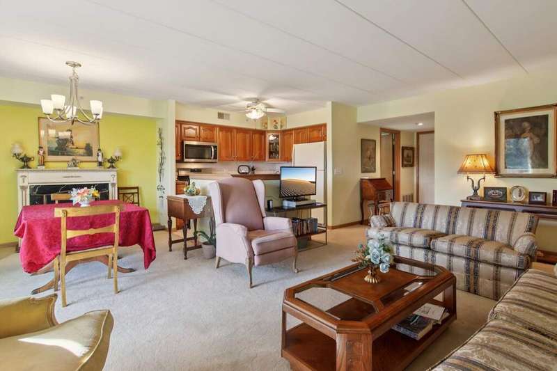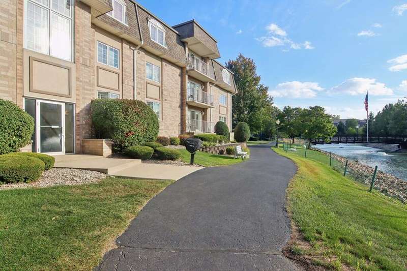 Prime Waterfront Location & Maintenance-Free Condo Living in an Elevator Building! This beautifully maintained, freshly painted 2-bedroom, 2-bath condo is perfectly situated on the second floor of a peaceful, elevator building with flexicore ceilings. Enjoy the ease of an open-concept floor plan featuring a spacious kitchen with center island seating, pantry, and includes newer appliances. There is a separate dining area and cozy living room. Step out onto your private balcony for fresh air and watch the swans swim in the pond while listening to the beautiful fountain water feature. The primary suite offers a 3/4 bath and a generous sized walk-in closet, while the unit also includes a separate laundry room and abundant closet space throughout. Both bedrooms boast new high end window treatments. Additional amenities include an attached, heated underground garage with storage, access to a clubhouse with an exercise room, and a scenic walking path encircling a serene pond--home to elegant swans. Located just minutes from the new South Shore Train Station, as well as shopping, dining, and major expressways--this is convenient, low-maintenance living at its best! No dogs or rentals allowed.