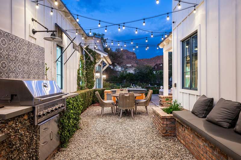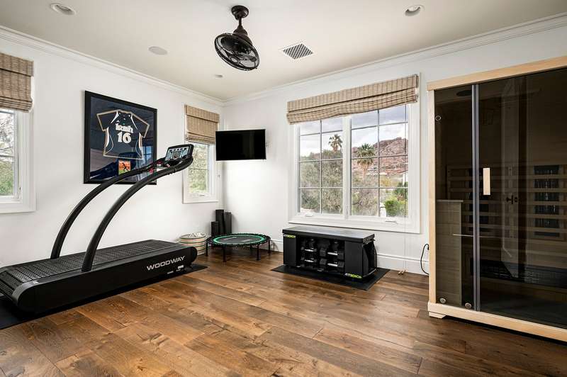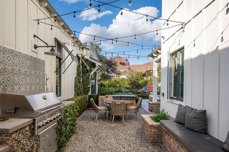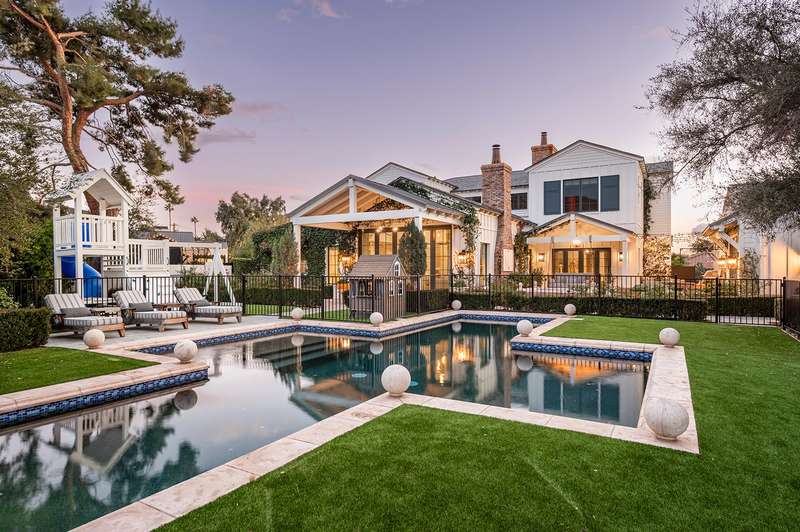 Welcome to this expansive 7,000 sq ft compound dedicated to health, wellness, and luxurious living! Nestled on one of Arcadia Proper's most beautiful and private cul-de-sacs, this rare opportunity offers the perfect blend of timeless charm and modern sophistication. This extraordinary estate features 5 bedrooms and 5.5 baths across 5,684 sq ft of thoughtfully designed living space, with an additional 1,142 sq ft indoor batting cage and wellness center—ideal for athletes, active families, or anyone prioritizing health and fitness. Built in 2017 with meticulous craftsmanship, the home exudes spacious elegance at every turn. The heart of the home is a gourmet chef's kitchen equipped with a walk-in refrigerator, walk-in pantry, refrigerator drawers, and top-of-the-line appliances- all designed to impress and built for effortless entertaining. Each of the five bedrooms includes its own en-suite bath, while the main-level primary suite offers convenience and comfort with generous space and refined finishes. The layout flows seamlessly from room to room, creating a warm, livable environment perfect for families and guests alike. Step outside to your own private resort-style oasis, complete with a sport court, sparkling pool and spa, and lush, mature landscaping. Panoramic mountain views add a sense of serenity and grandeur to your everyday backdrop. Whether you're raising a family, entertaining guests, or savoring quiet evenings under the stars, this exceptional Arcadia estate delivers it all. Bring the kids, take a tour you'll be glad you did.