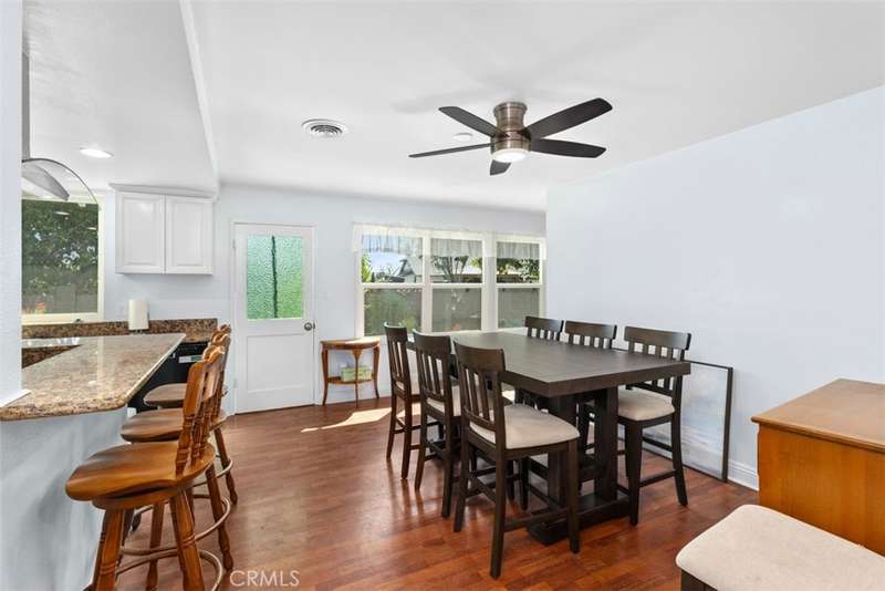 Inside, you'll love the remodeled open-concept kitchen featuring a spacious breakfast bar that flows seamlessly into the dining and living areas--making it the ideal layout for family gatherings and entertaining. The home boasts freshly painted interiors, smooth ceilings with recessed lighting, and a mix of laminate and hardwood flooring that adds warmth and character.