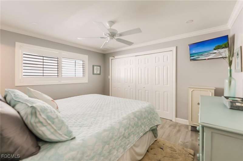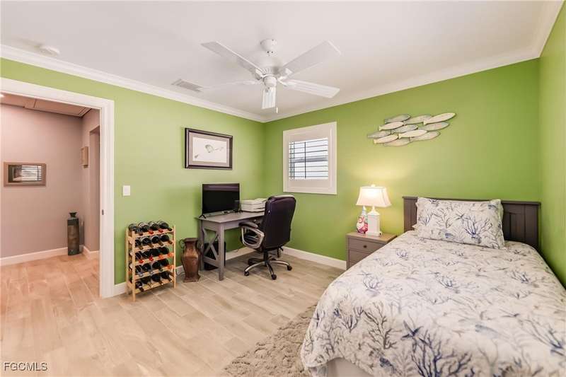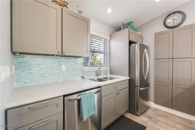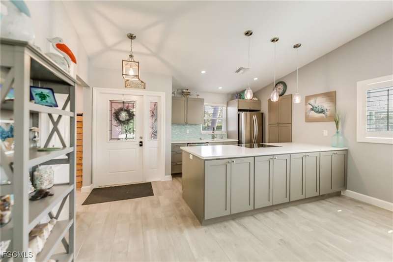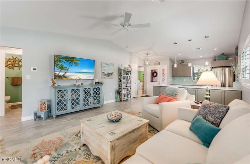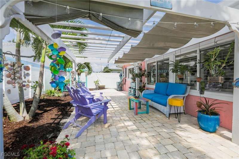 Welcome to The Pink Pelican Cottage! This delightful 3-bedroom, 2-bath ground-level retreat feels anything but small, with elevated ceilings that create an airy, open ambiance throughout. Completely renovated, the cottage offers an inviting blend of modern comforts and casual coastal style. The bright kitchen flows seamlessly into spacious living and dining areas, perfect for relaxing after a day on the beach or entertaining family and friends. Abundant storage is thoughtfully integrated into the home, making it ideal not only as a vacation getaway but also as a comfortable full-time residence. Furnishings can be purchased separately if desired, creating an easy turnkey opportunity Step outside to your own private outdoor oasis surrounded by lush tropical landscaping. Whether you're enjoying your morning coffee, hosting a sunset gathering, or simply unwinding with a good book, this magnificent sitting area extends your living space and captures the laid-back Sanibel lifestyle. Although not walking distance, the beach is just a 5-minute bike ride away. The cottage is also centrally located for effortless access to restaurants, Jerry's, shopping, bike paths, and convenient on and off island travel. Flood barriers are being installed soon, offering added peace of mind. The Pink Pelican Cottage is the perfect place to escape to-a charming, low-maintenance island home you'll love as a seasonal retreat or a year-round sanctuary.