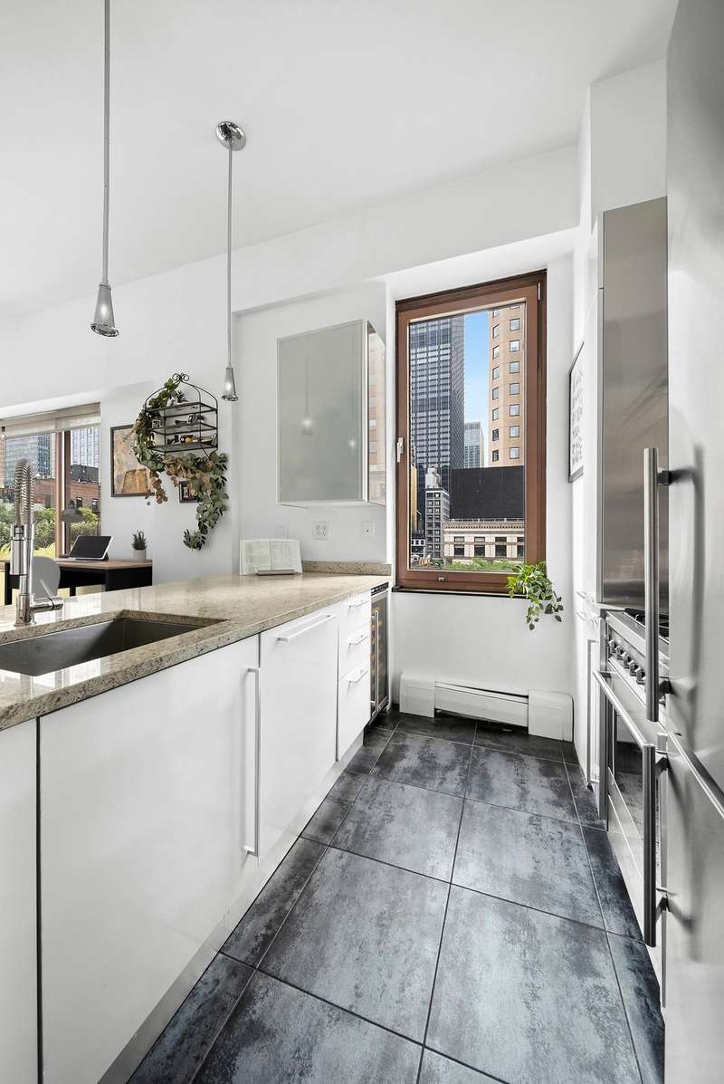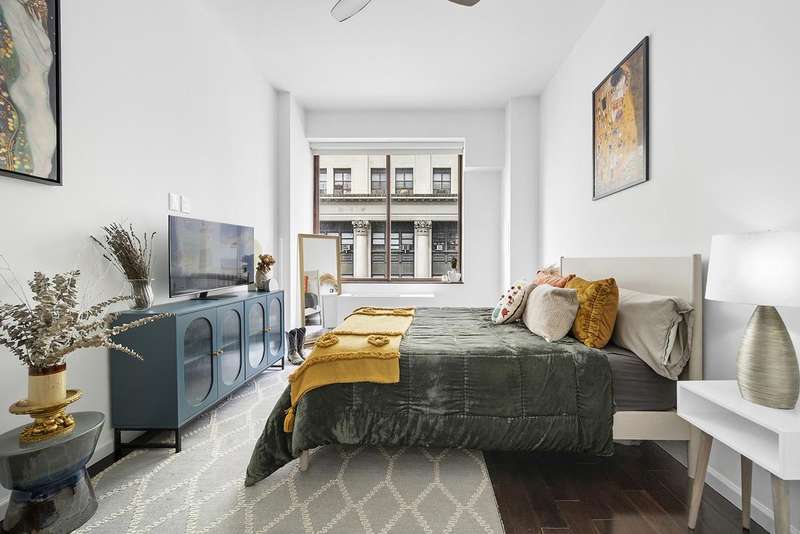 Opportunities like this don't come along often an oversized, corner one-bedroom home with soaring 10+-foot ceilings, nearly 800 square feet of thoughtfully designed space, and natural light pouring in from two walls of windows.lt;brgt;The expansive living area spans over 23 feet in length, offering a true loft-like atmosphere with high ceilings and dramatic windows that wrap the corner, creating an open and luminous environment. The adjacent chef's kitchen is accented by a tall window that overlooks tree-lined greenery bringing warmth and a touch of nature indoors.lt;brgt;The king-sized bedroom, nearly 17 feet long, is peacefully situated on a quiet side street and offers generous space for additional furnishings or a work-from-home setup. The entire apartment has been fully renovated with care, featuring wide-plank floors, a sleek modern bathroom, premium appliances, and bespoke cabinetry throughout.lt;brgt;Storage lovers will appreciate the abundance of space four large double-