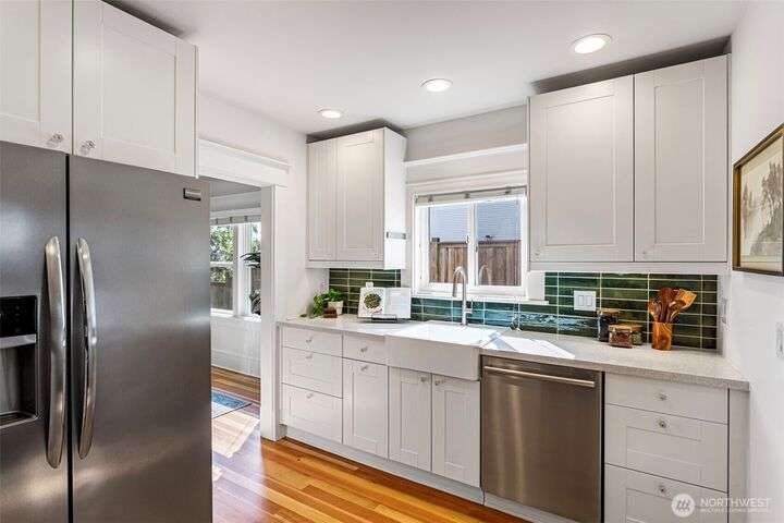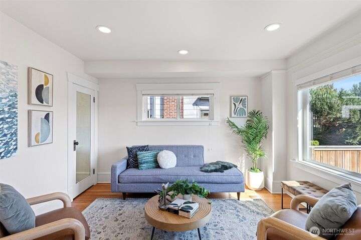 Main house+detached ADU+unfinished basement=3,975 sq/ft! Two spacious homes on one large lot, fully fenced for privacy. Meticulously renovated Craftsman + DADU completed in 2016. Ideal for multi-generational living or for income generating. Main house is the perfect blend of modern + classic details. Main level has great flow w/high ceilings, built-ins, fireplace, fir floors & formal dining. Renovated kitchen complete w/dining nook. Top floor has 3 bedrooms including the primary suite, main has 2 bed, +1 bath. Updated systems + AC. DADU is bright & airy, w/2 beds/1 bath on the main, finished bonus attic & 2nd bath above. AC + private yard/patio area. 4 off street parking. Centrally located in Seattle-close to shops, downtown, transit.