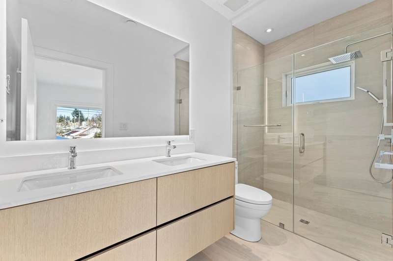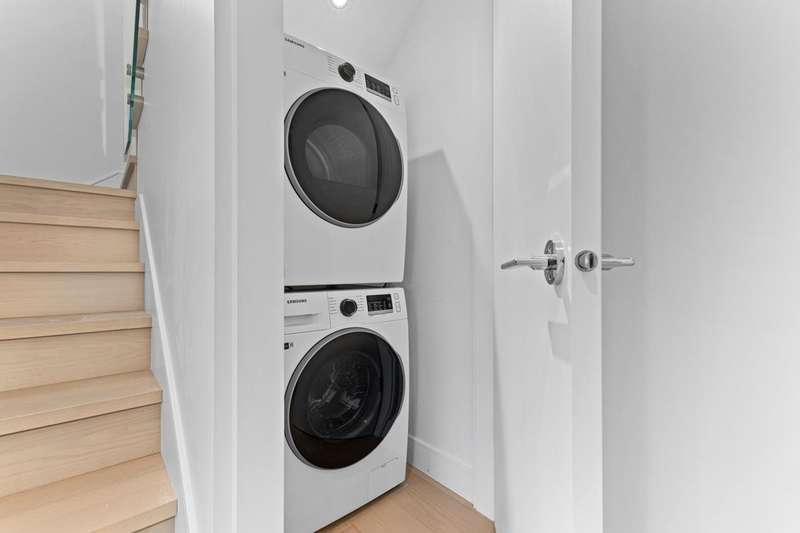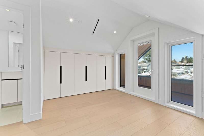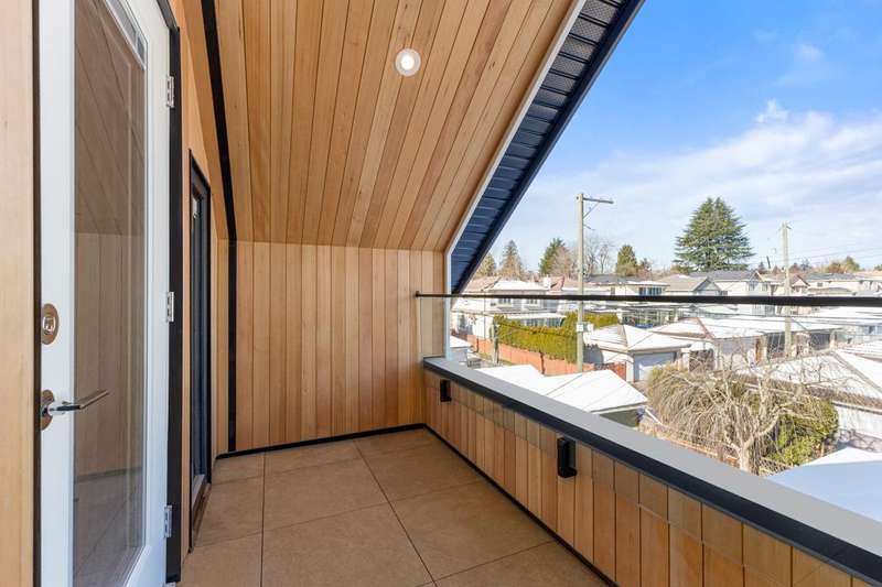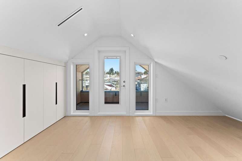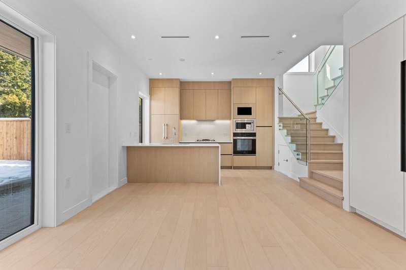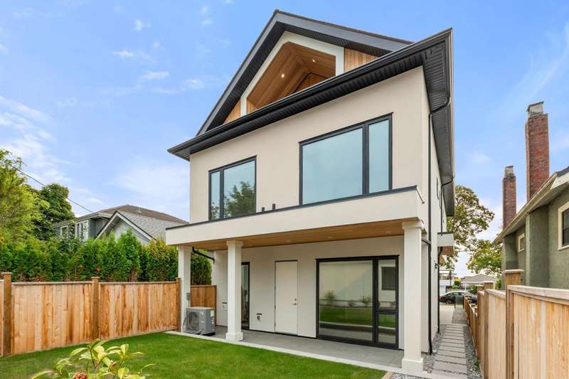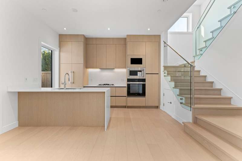 BRAND NEW LUXURY DUPLEX W/ HUGE PRIVATE BACKYARD by acclaimed builder VANTAC – where modern elegance meets timeless Japanese craftsmanship. This architectural gem showcases soaring 10ft ceilings, covered patio to connect indoor & outdoor living, custom floating cabinetry & rich engineered hardwood floors. The chef’s kitchen impresses w/ a waterfall island, ample storage space, seamless one-piece backsplash, Miele gas cooktop & fully integrated appliances. Triple-glazed windows ensure peace & quiet, while skylights & abundant windows bathe every corner in light. Thoughtfully designed w/ built-in CCTV, custom closets in all bedrooms, a 3-bed 2-bath second level, and a private top-floor ensuite + balcony sanctuary. Detached garage with EV charging included, truly a masterpiece to call home.