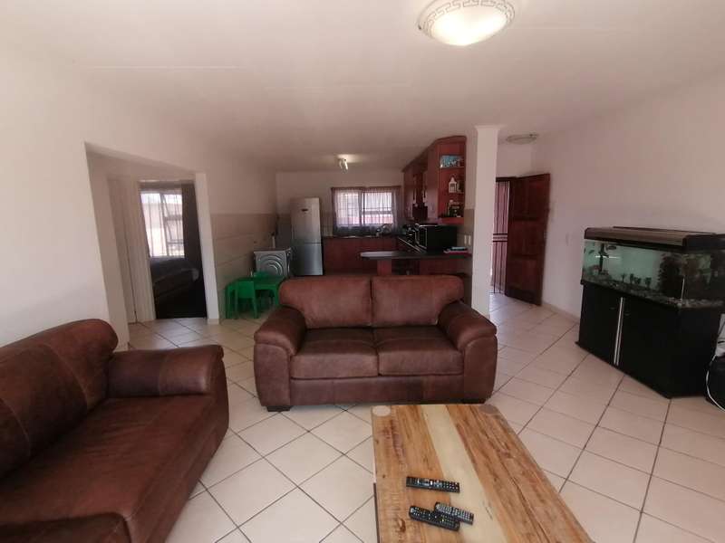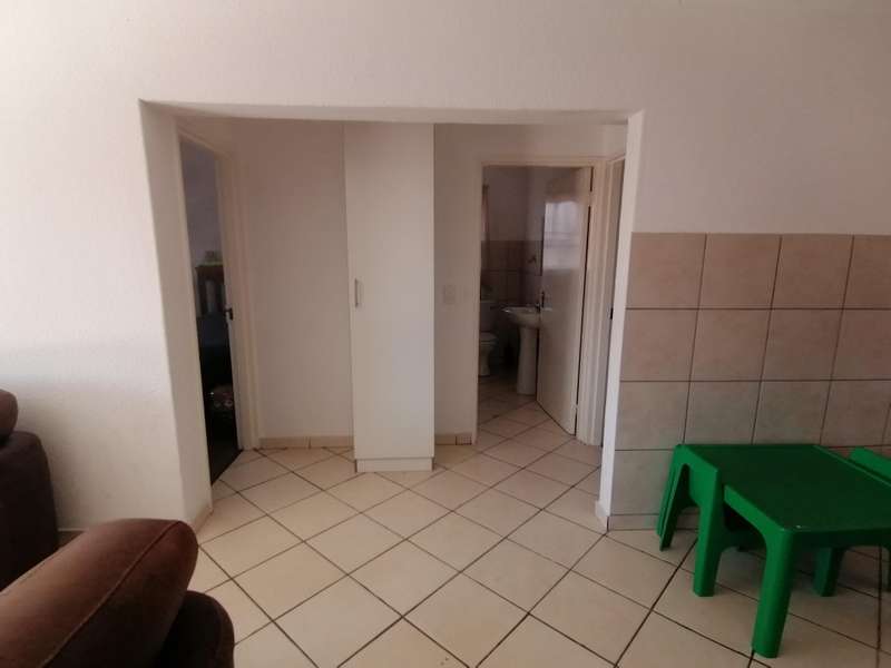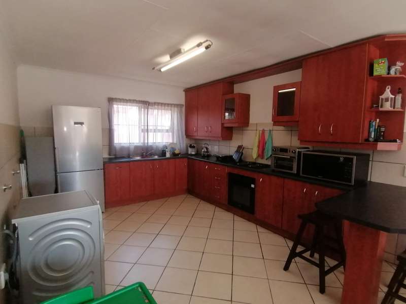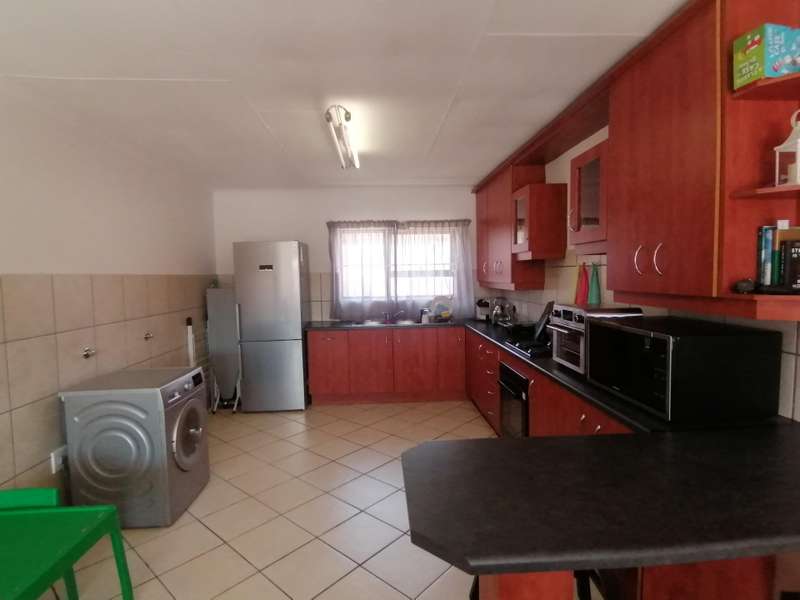 VERT NEAT TOWNHOUSE IN A SECURE COMPLEX This home offers: 2 well-sized bedrooms l full bathroom with a corner bath, shower, basin & loo Lovely open plan kitchen with a breakfast nook, cherry wood cupboards, granite counter tops, hob, under counter oven. Space for a double-door fridge and washing machine. Open plan lounge and dining room and patio leading through glass doors. Covered parking for one vehicle Extra visitors parking
