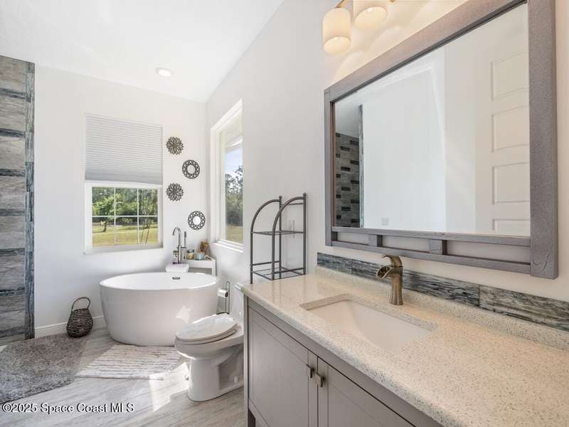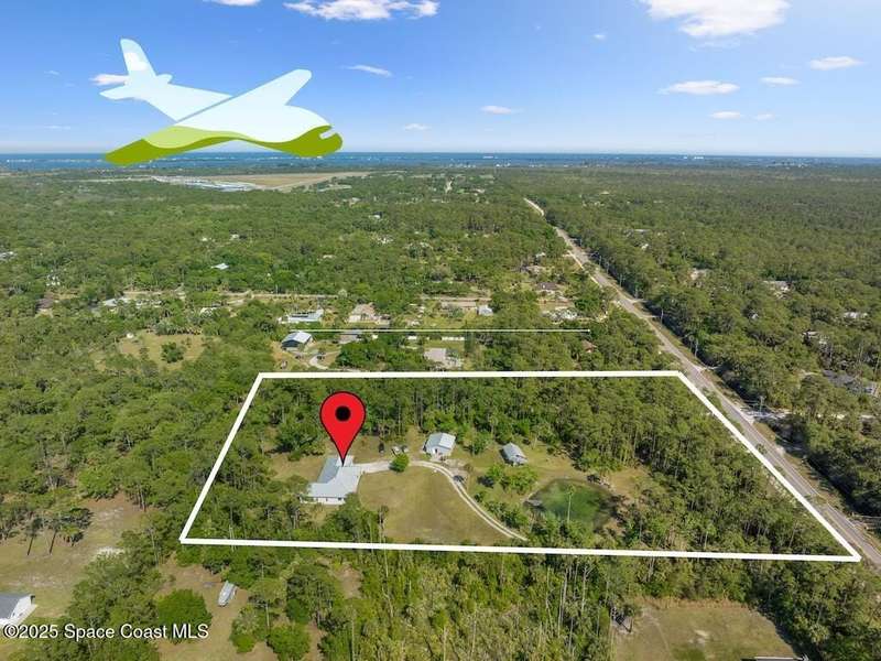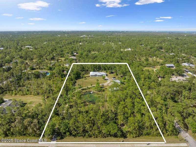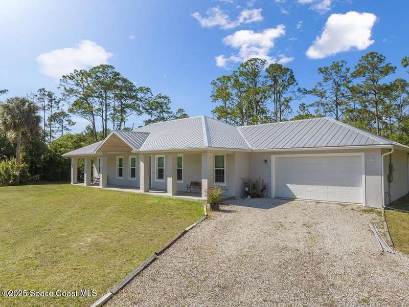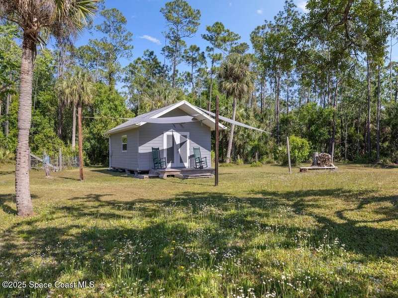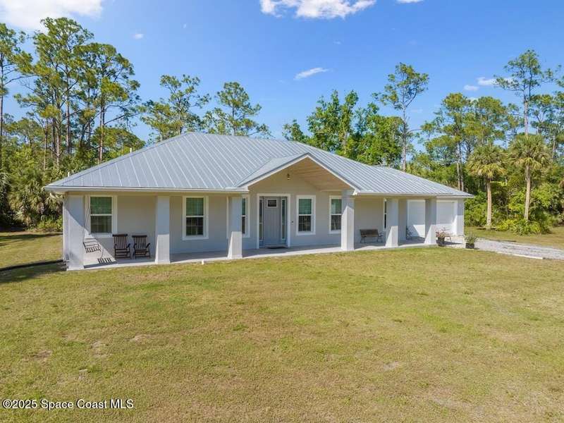 Custom-built in 2020, this 3 bed/2 bath home on 4 private acres offers modern comfort and incredible land value! Beyond the Artesian well-fed pond, finished cabin with electricity (guest/in-law suite), and 900 sq. ft. workshop with hydraulic car lift, the property offers potential for horses, recreation, or a business needing room to grow. Inside, enjoy an open floor plan with 9.5 ft. ceilings, Italian tile, granite counters, Tuscan black appliances, and a primary suite with oversized tiled shower and freestanding tub. Outdoor living shines with a 480 sq. ft. front porch and 336 sq. ft. enclosed rear porch, plus space for a pool. With scenic trails, 360 privacy, and quick access to I-95, US-1, Valkaria Airport, The Habitat Golf Course, Grant Valkaria Park, and nearby boat ramps including Christenson's, Jorgenson's, and Main St. Sebastian, this retreat blends comfort, privacy, and land potential!