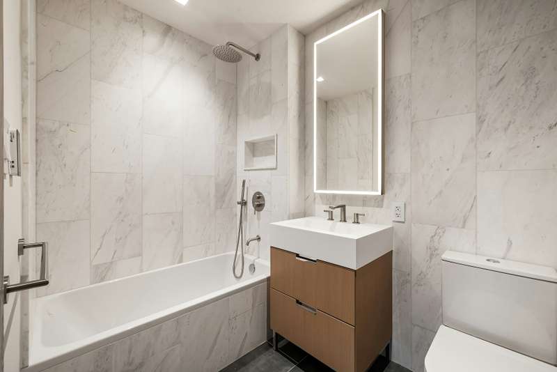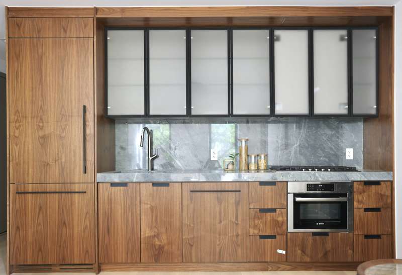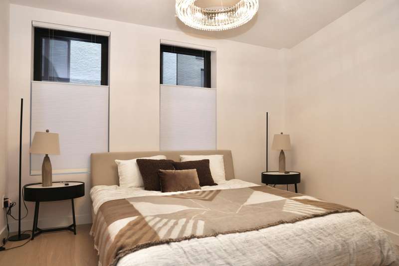 Introducing Unit 206, a stunning one-bedroom with home office residence facing southwest with tree top views capturing amazing light throughout the day. Designed with both style and functionality in mind, this unit provides the perfect blend of comfort and sophistication. Interior finishes include 7.5 inch white oak flooring, 9 foot ceiling heights and triple-paned thermal windows. Kitchens are outfitted with polished Soho Grey Quartzite countertops and backsplash, custom walnut and fluted glass cabinetry, including a separate pantry and a suite of elegant Gaggenau and Bosch appliances. ; Each space is impressive in both function and design. Bathrooms harmoniously blend honed Sino white marble, glass, porcelain heated floors and gorgeous white oak vanities and custom fixtures.