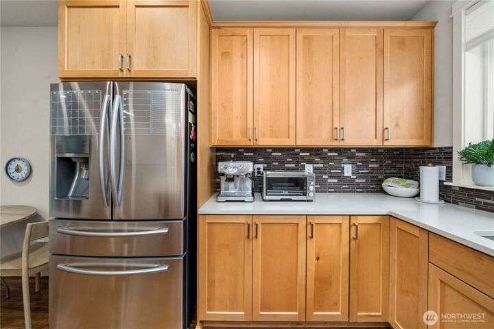 Spacious & Contemporary Kestrel Ridge Townhome. Beautifully maintained and move-in ready, this premium Sammamish residence offers high-end finishes and a desirable location. The chef’s kitchen features stainless steel appliances, a five-burner range, and a large quartz island—perfect for cooking and entertaining. The open-concept great room boasts soaring ceilings and a cozy gas fireplace. Flexible floor plan with three bedrooms, including two upper-level primary suites plus a lower-level bedroom ideal for a home office or guest room. Step outside to a private patio and low-maintenance fenced yard backing to a peaceful greenbelt. Attached one-car garage with storage plus an additional reserved parking space. Highly rated LW school district.