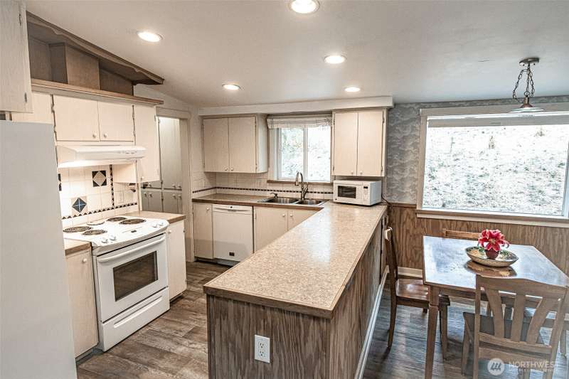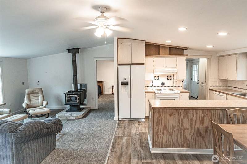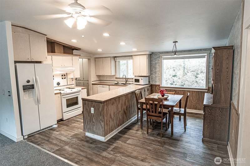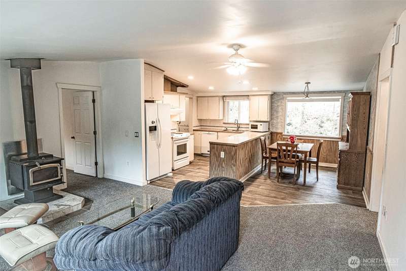 Amazing rare, an affordable home in Kitsap with some privacy and acreage (0.64 ac). This home has new siding, skirting, porch, sidewalks, fencing, all new flooring, newer appliances, and more. See this home with three bedrooms and two full baths. This large (1,122' square foot) two car garage with a shop in the back could be the perfect set up. Plus a storage trailer 202' square foot is there for all your additional storage needs.