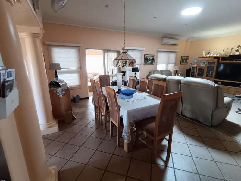 Welcome to your dream Home in the stunning suburb of Protea Park This house is situated in a small complex with only 6 properties in the Complex, near schools and restaurants. This beautiful house has 3 Bedrooms, 2 Bathrooms, with the main bedroom offering an En-suite Bathroom for added privacy and convenience. This house has a beautiful modern kitchen with a separate scullery. The house also has an enclosed patio, which includes a built-in braai for all seasons. The house is fully equipped with 5 air conditioners to ensure cool temperatures on those hot summer days. On the outside there are 2 Wendy’s and an open patio with its own braai and lots of entertainment possibilities. The Property also has a private entrance and 2 double carports at the back and in front there is a double garage. The Property is also Pet friendly. Electricity and water shortage won’t be a problem as this property have 8 solar panels, an inverter, and battery system to keep your home running smoothly even during power outages. A borehole ensures a sustainable water supply. Call today to view this extraordinary property.
