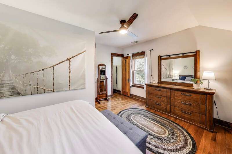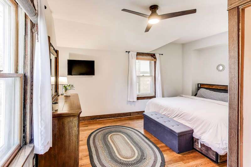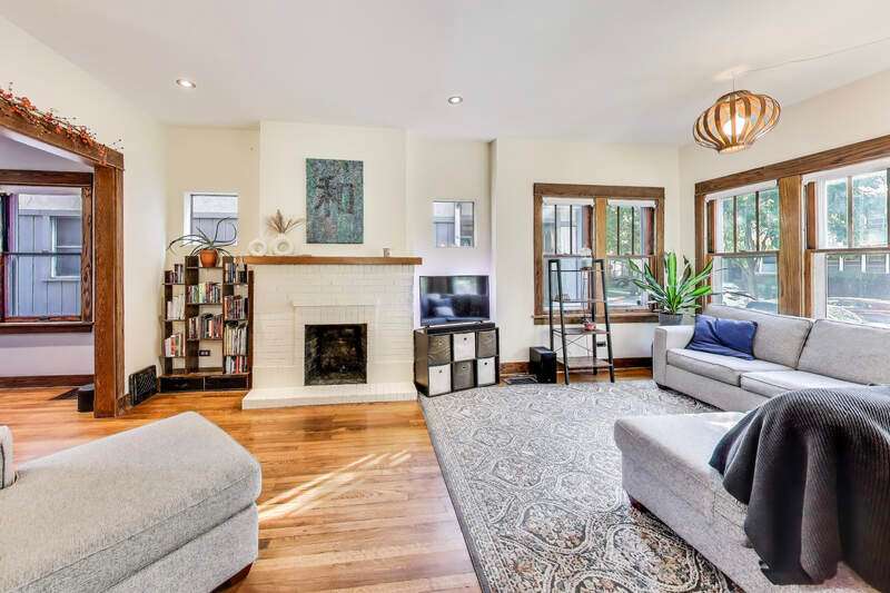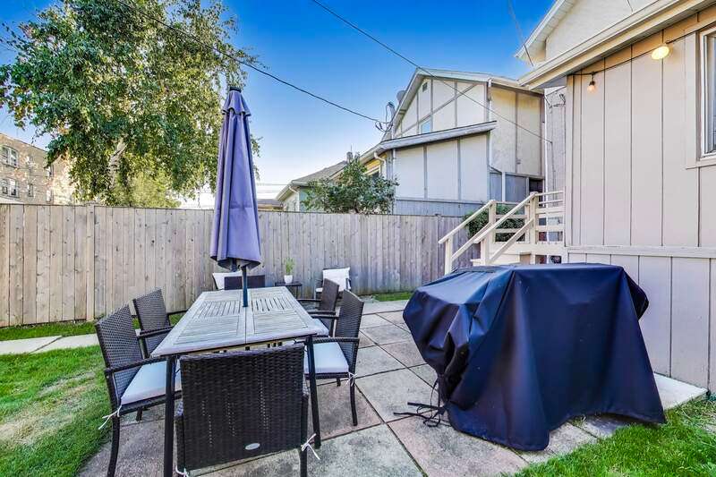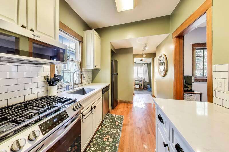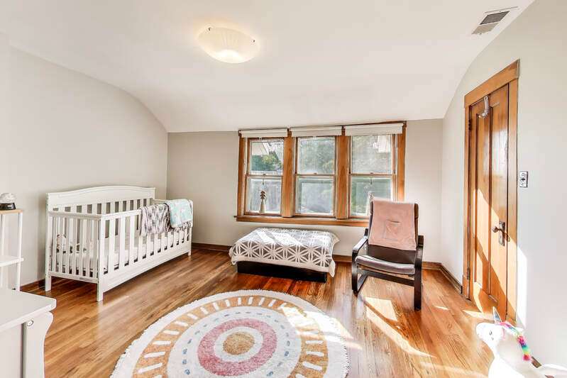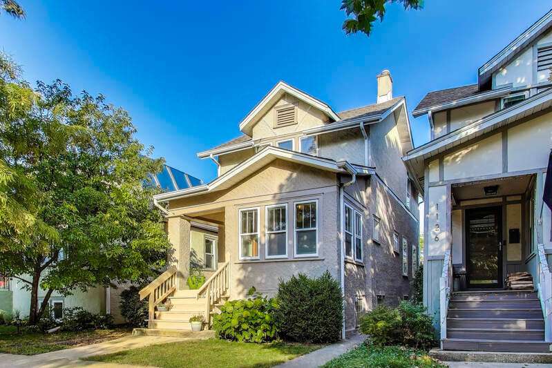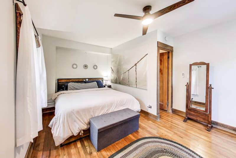 Absolutely adorable two story in the coveted Arts district - updated while still maintaining it's vintage charm! Light filled living room with high ceilings, hardwood floors and trim opens to a dedicated dining room. The kitchen, renovated in 2022, has been opened up with a coffee/breakfast bar for a more open concept while boasting quartz countertops and stainless steel appliances. A cozy back room used as a playroom would also make a great office and has windows looking out to the private, fenced and landscaped yard. Two bedrooms up; both spacious, both with large closets, and filled with character. Second floor bath is also updated! The full basement has lots of space for storage, extra office space, or finish off for family room space. Two car detached garage. Ideal location near CTA Blue line, Arts disctrict shops, park, conservatory, etc!