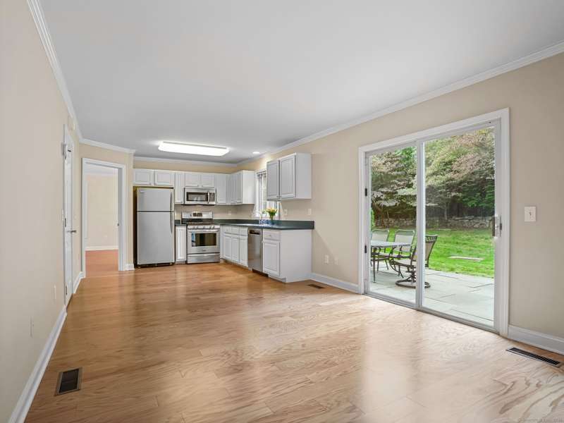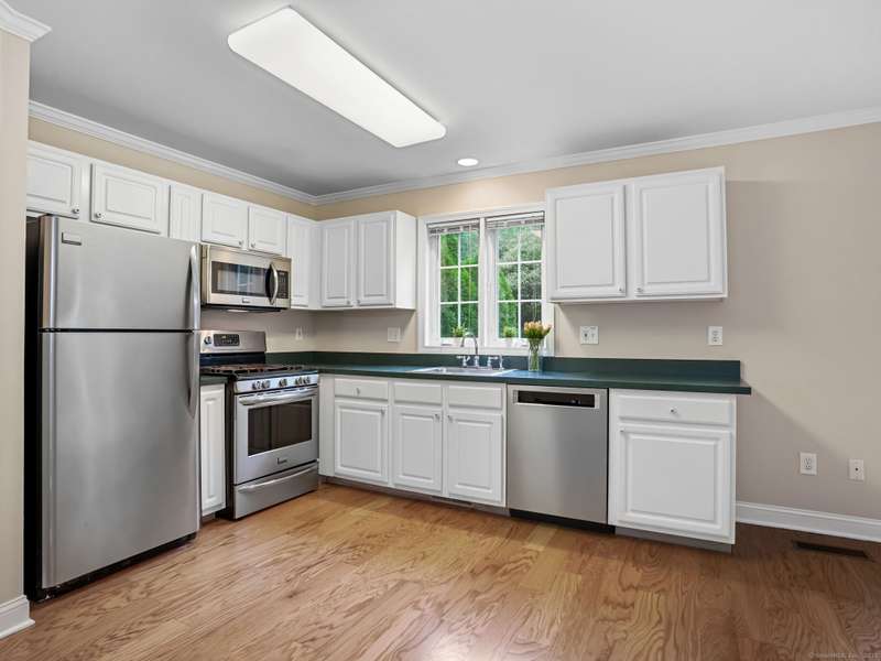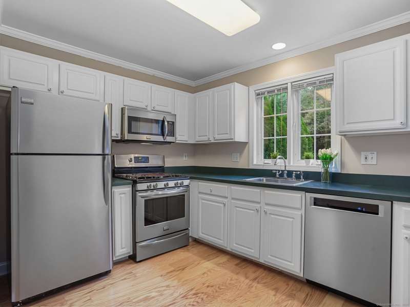 New to the market in South Wilton - you'll love this easy maintenance, free standing home in the beautiful community of Grumman Hill Village! Enjoy living in this wonderful location in a community close to commuter roads, the Metro North, shops and of course, award winning Wilton schools. This home is in great shape with brand new hardwood floors and new 2nd floor carpeting. Lovely open space on the first floor combines the living and dining room areas for easy entertaining. The eat-in kitchen and family room with gas fireplace open directly out to the VERY private patio and backyard. Upstairs the Primary vaulted ceiling suite boasts a large walk-in closet, palladium windows and the en-suite dual sink bathroom. There are 2 additional bedrooms, a terrific loft space (perfect for a home office) and a laundry/mechanical room. Loads of storage in the 2-car attached garage as well as a very large attic easily accessed by the 2nd floor pull-down staircase. Don't miss your chance to live in t