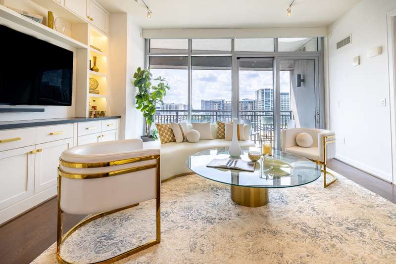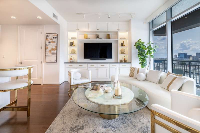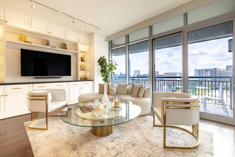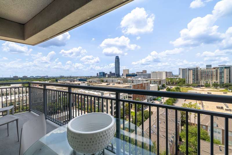 Spectacular in every way, this light-filled 1/1.5 on the 10th floor impresses from the front door balcony with panoramic Galleria and Westcreek views. Shows beautifully. Unit 1003 includes 2 parking spaces, all appliances, custom lighting, plus a 65” mounted TV and Bose sound bar. Features include electric living room shades, custom closet built-ins, upgraded bedroom carpet, and finishes beyond the developer’s standard. Highland Tower is a renowned 17-story full-service building perfectly situated near River Oaks District and Highland Village in a walkable setting. Schedule your private tour and see why you’ll love living here!