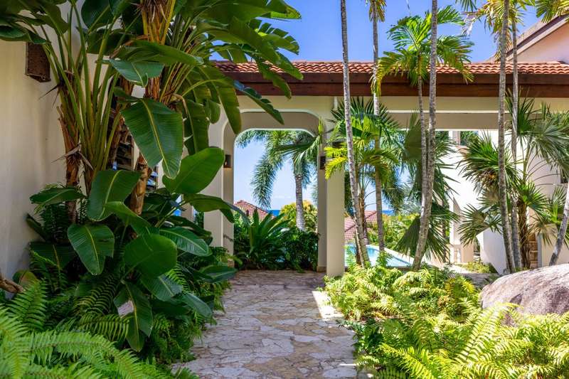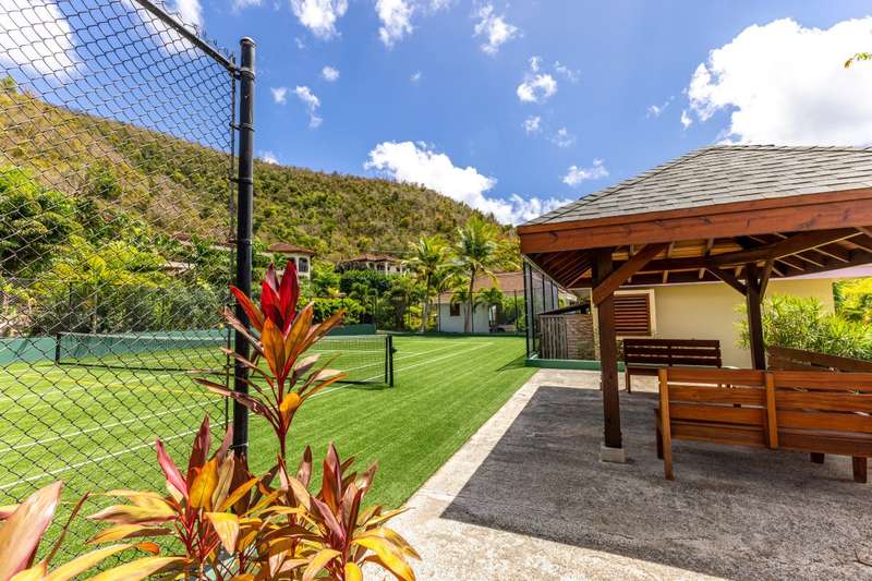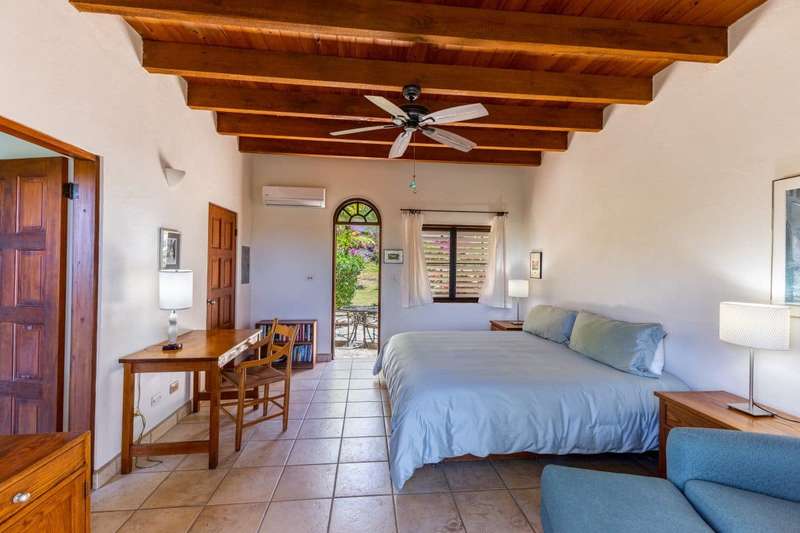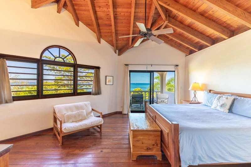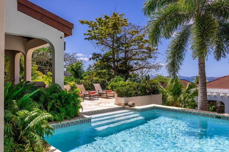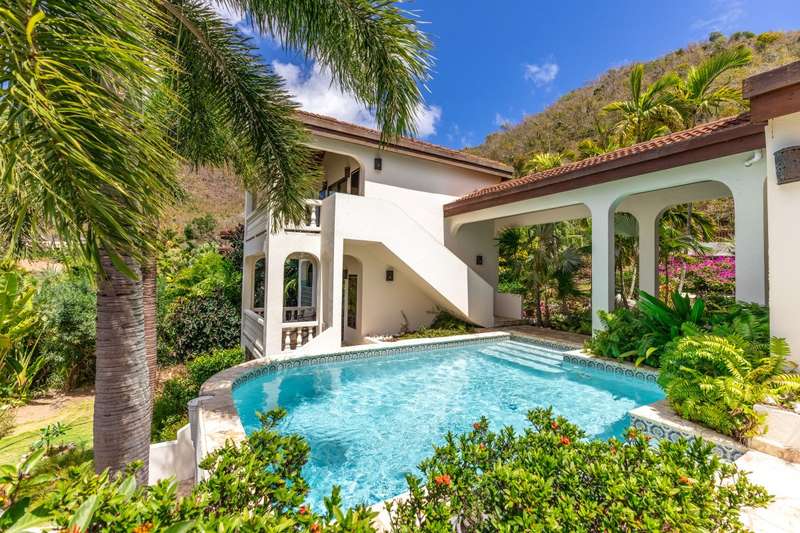 Bellamare is about 100 yards to Mahoe Bay, a beautiful beach of crystal clear water. It affords an exotic lifestyle of year-round warm temperatures, brilliant sunsets and cooling Trade Winds on a small island. Bellamare is built slightly hillside overlooking the islands of Sir Francis Drake Channel. This 4-bedroom house is situated in a low-density, private estate within 10 minutes’ drive of the airport, the yacht harbor and excellent restaurants and shops. It is skillfully designed to capture the spectacular ocean view while ensuring perfect privacy. A sunny free-form pool and a tanning deck are centrally located. This is a rare opportunity to own a home very close to a beautiful beach. For more details about ownership of this vacation rental villa, contact the agent, Bernadette George. Summary Price: $2.65M USD Property type: House (completed 1999) Bedrooms: 4 Bathrooms 4.5 Site Acreage: 0.379 acres /0.15 hectare Title: Freehold Location: Hillside on Mahoe Bay, Virgin Gorda Estate: Covenanted Estate House size: Approximately 4500 covered space Pool: Yes, and tanning deck. Air Condition All bedroom suites have AC Water Cistern of 50,000 and BVI Government Mains water Electricity: BVI Electric Corporation Generator Mahoe Bay Estate Generator Tennis Courts Yes Watersports Storage and rental of watersports equipment nearby Beach Access Yes – concreted walkway of 200 yards to Mahoe Bay Vacation Rental Has been a highly successful vacation rental property ;