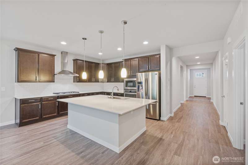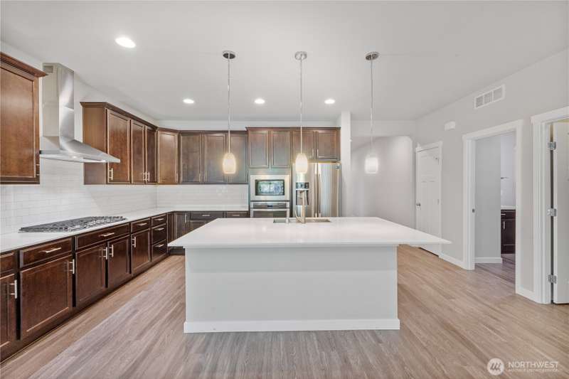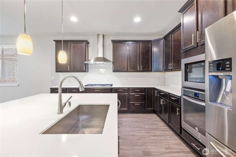 Welcome to this beautiful craftsman style rambler located in the highly desirable community of McCormick in Port Orchard. This home features a fenced yard with a green belt out back, as well as patios both front and back. Inside you'll find beautiful slab quartz countertops and stainless steel appliances, wall mount oven, 36" gas range and walk-in pantry. Primary bedroom has a large en suite bathroom with a large vanity and walk in closet.