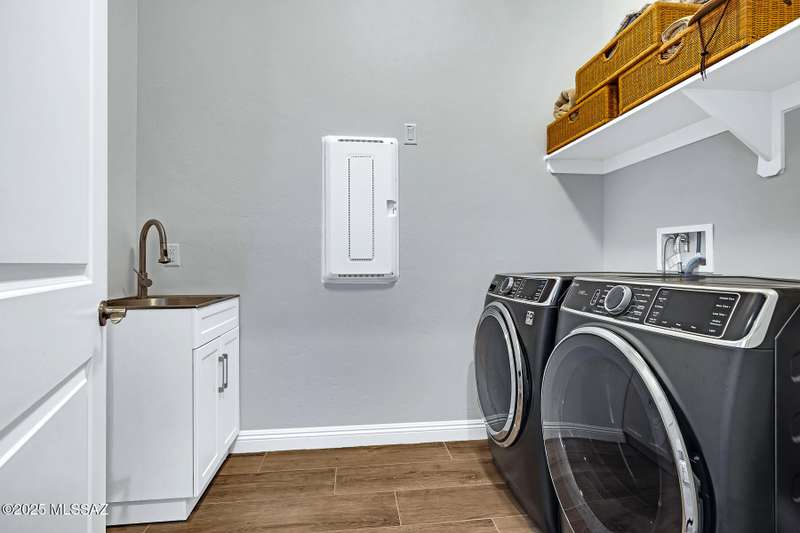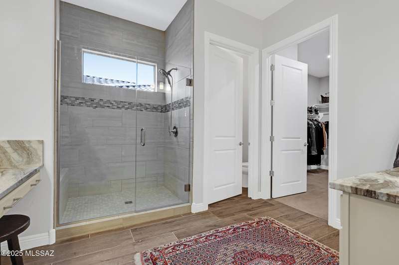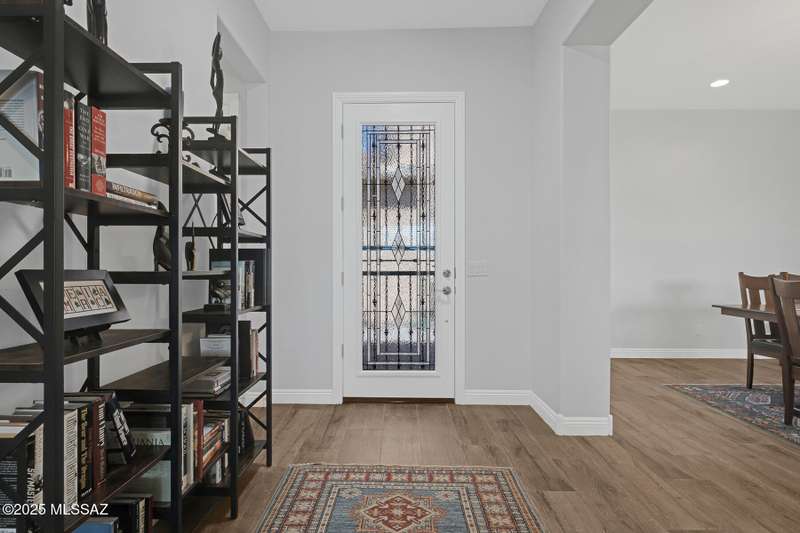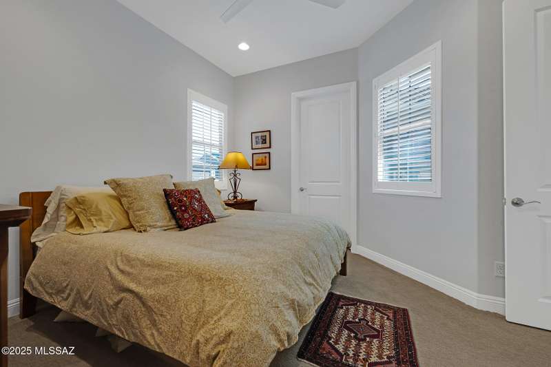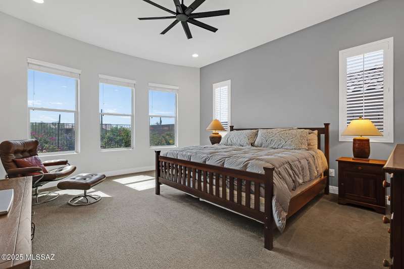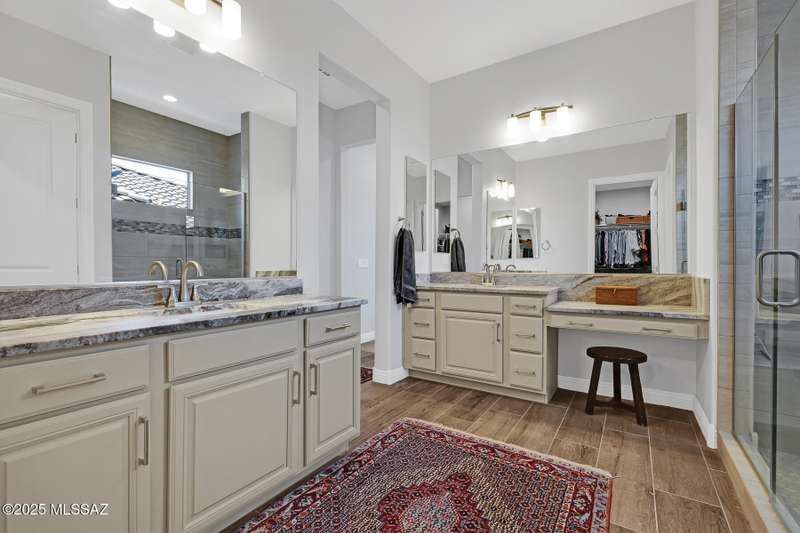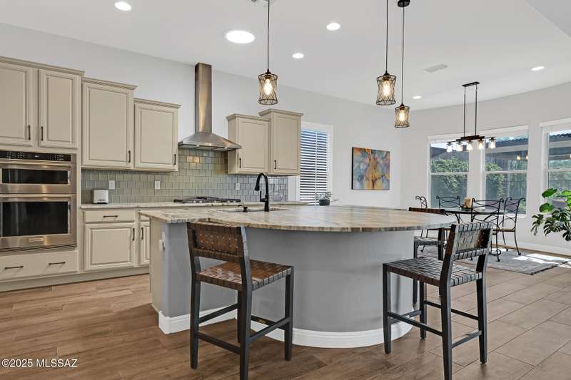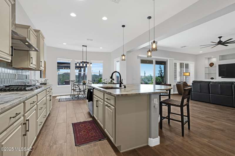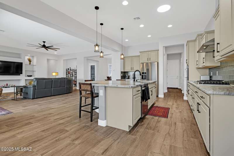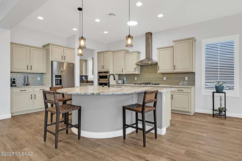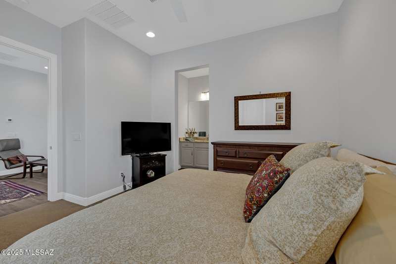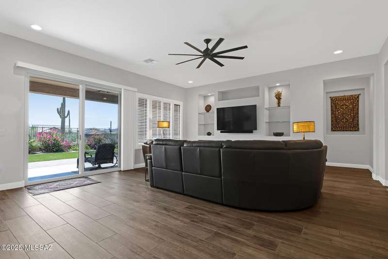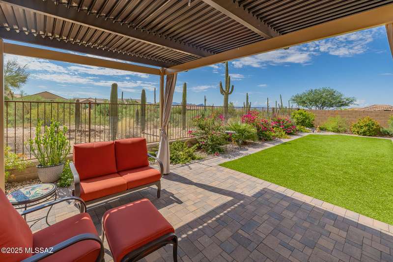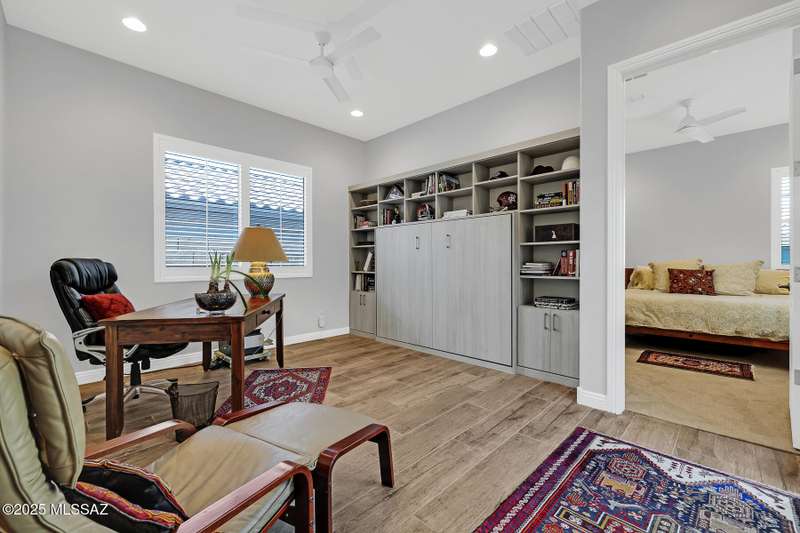 Welcome to this meticulously maintained 2BD/2.5BA (2514 sqft) Journey Model located in the sought-after Del Webb at Dove Mountain active adult 55+ community. Step into an open-concept floor plan featuring a spacious great room, formal dining area, and a stunning chef's kitchen complete with upgraded cabinetry, premium countertops, top-of-the-line appliances, and a butler's pantry with a large walk-in pantry for extra storage. Luxurious owner's suite offers a spa-like retreat with a generous walk-in shower, dual vanities, and a spacious walk-in closet. Your guests will enjoy the comfort of a private en suite guest bedroom, while the versatile den/office includes a custom Murphy bed, perfect for accommodating visitors. Retreat outdoors to a gorgeous backyard oasis featuring a covered patio